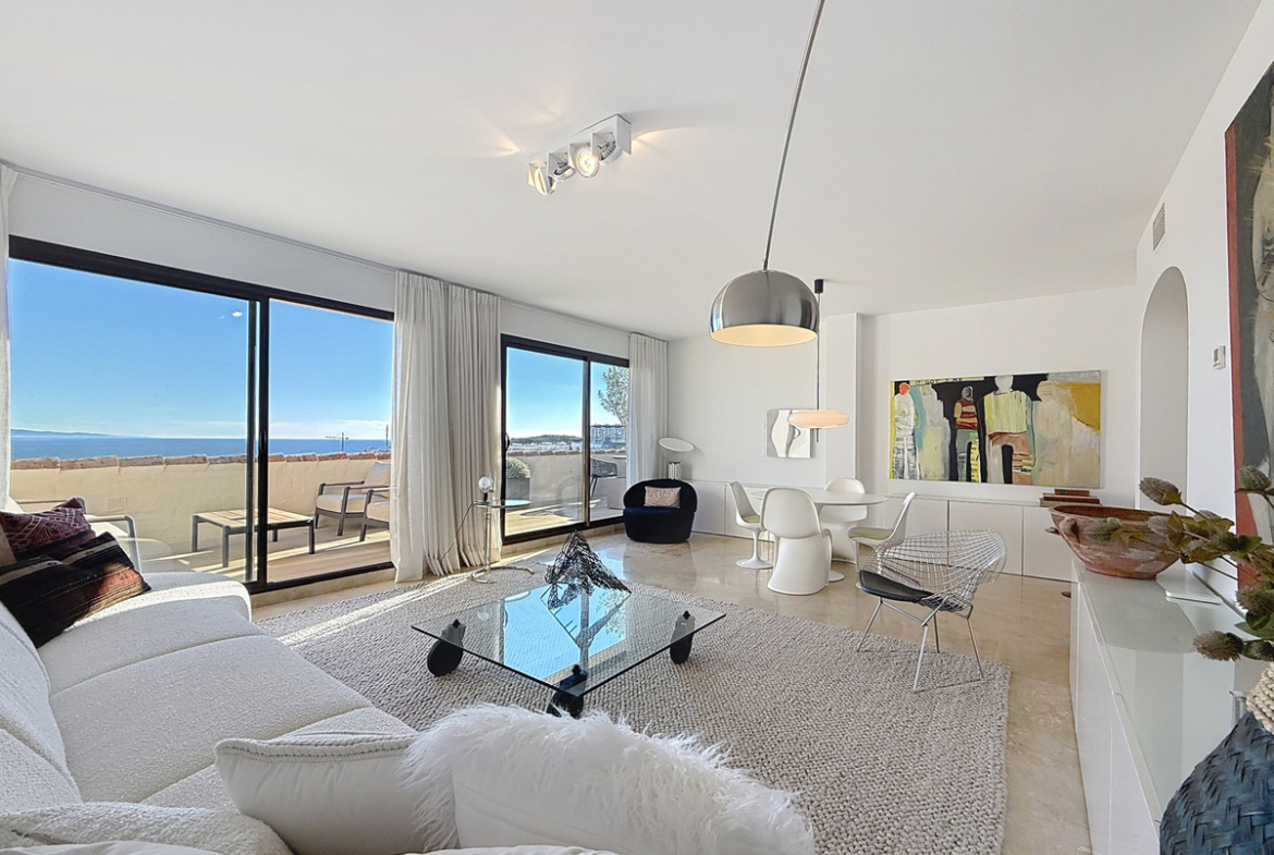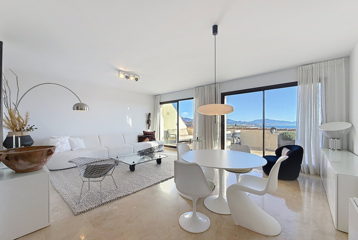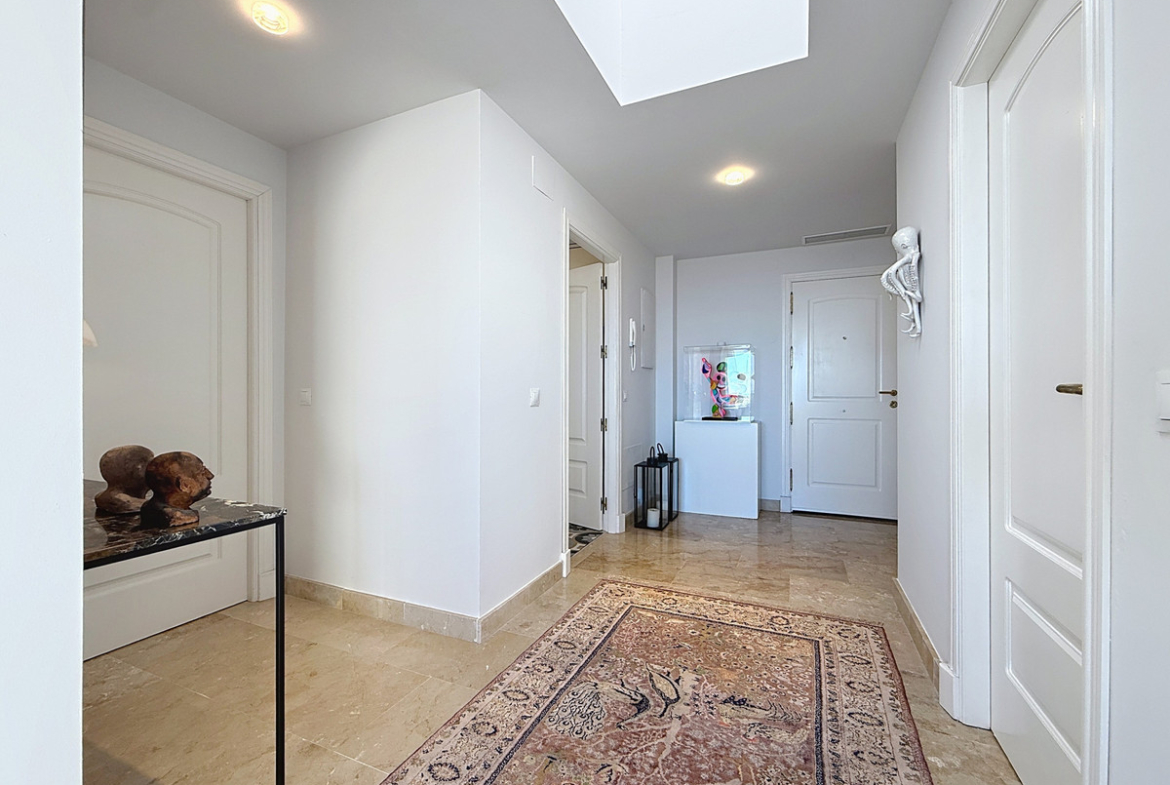 ‘’Set within the prestigious Duquesa Village residential community, this outstanding penthouse combines generous proportions, abundant natural light and a truly privileged lifestyle. From the moment you step inside, the sense of space is immediate, enhanced by a skylight in the entrance hall and an open first glimpse towards the sea.