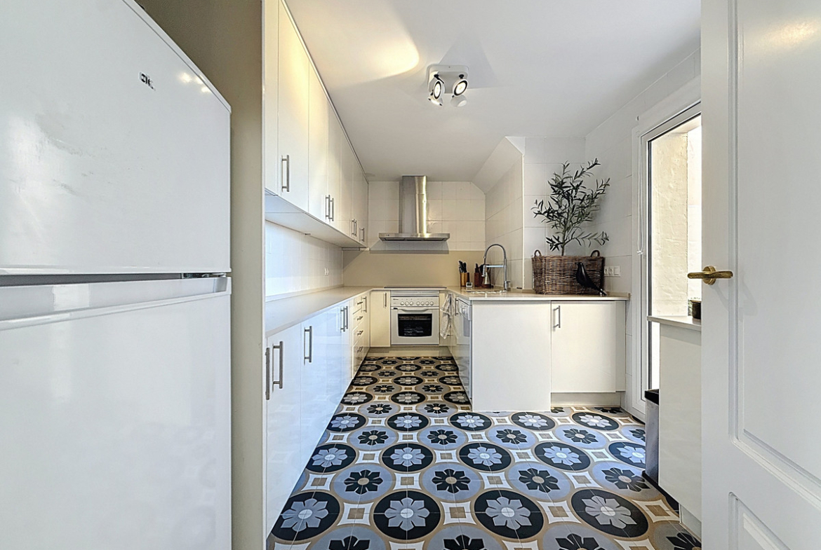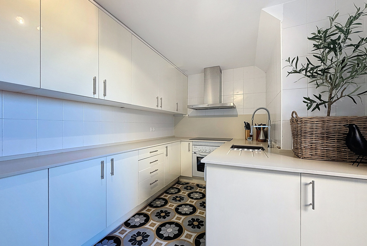 The fully fitted, spacious kitchen stands out for its granite worktops and quality finishes. It opens onto a west-facing terrace, perfect for al fresco dining, sunset drinks or relaxed barbecues in complete comfort.