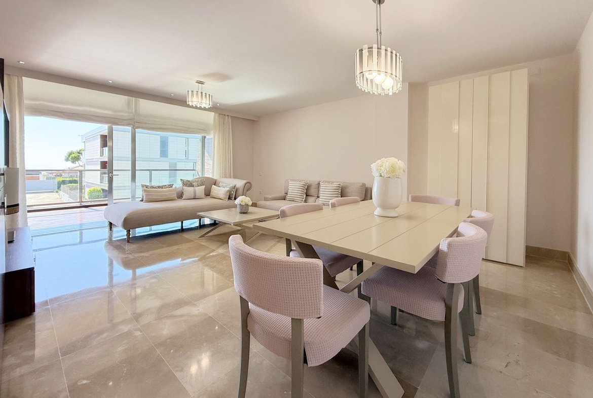 Privileged location in a beautiful private residential community with 24-hour security, offering peace, safety, and just 5 minutes from all essential services and the Port of La Duquesa. Situated in a meticulously maintained complex with extensive communal areas including an outdoor swimming pool, heated indoor pool, and a social area for events and gatherings. This sophisticated 3-bedroom, 3-bathroom property stands out for its excellent southeast orientation, providing abundant natural light throughout the day. It boasts partial sea and pool views from its spectacular 14 m² terrace — the perfect spot to enjoy the Mediterranean climate in a relaxed and private setting. The home has been built with luxury finishes, including a fully equipped modern kitchen, marble flooring, and impeccable details. It also comes with a private parking space and a storage room, adding extra convenience. A unique opportunity to acquire an elegant home with high rental potential and an excellent price-quality ratio. A secure investment and an ideal place to live all year round!