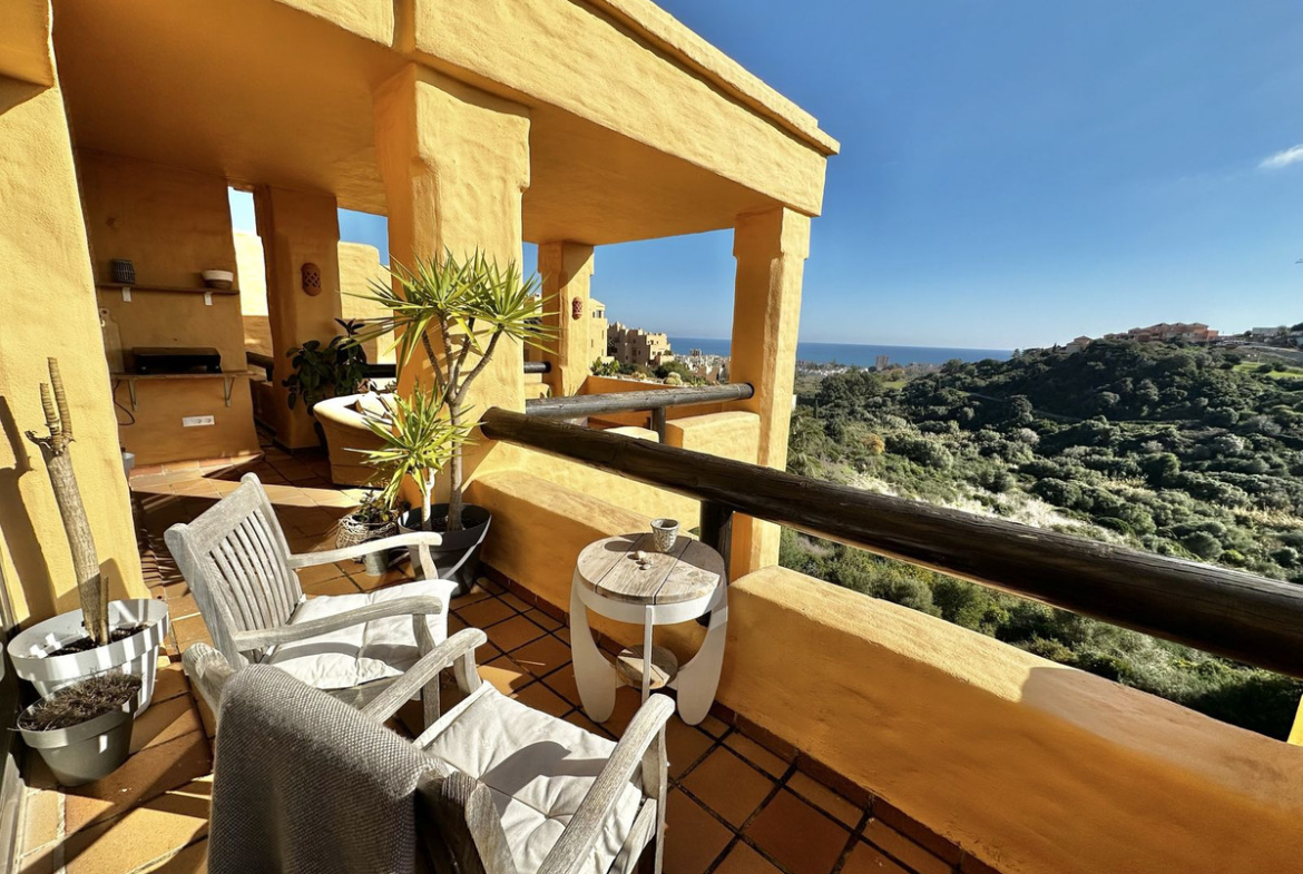 Coto Real La Duquesa is highly sought after for its elevated position, excellent build quality, and spectacular views over the golf course and the Mediterranean Sea, while still being within walking distance to shops, restaurants, beaches, and all local amenities. This is a rare all-on-one-level penthouse with no steps, combining easy access with an unusually large terrace, a highly desirable feature in the La Duquesa property market.
