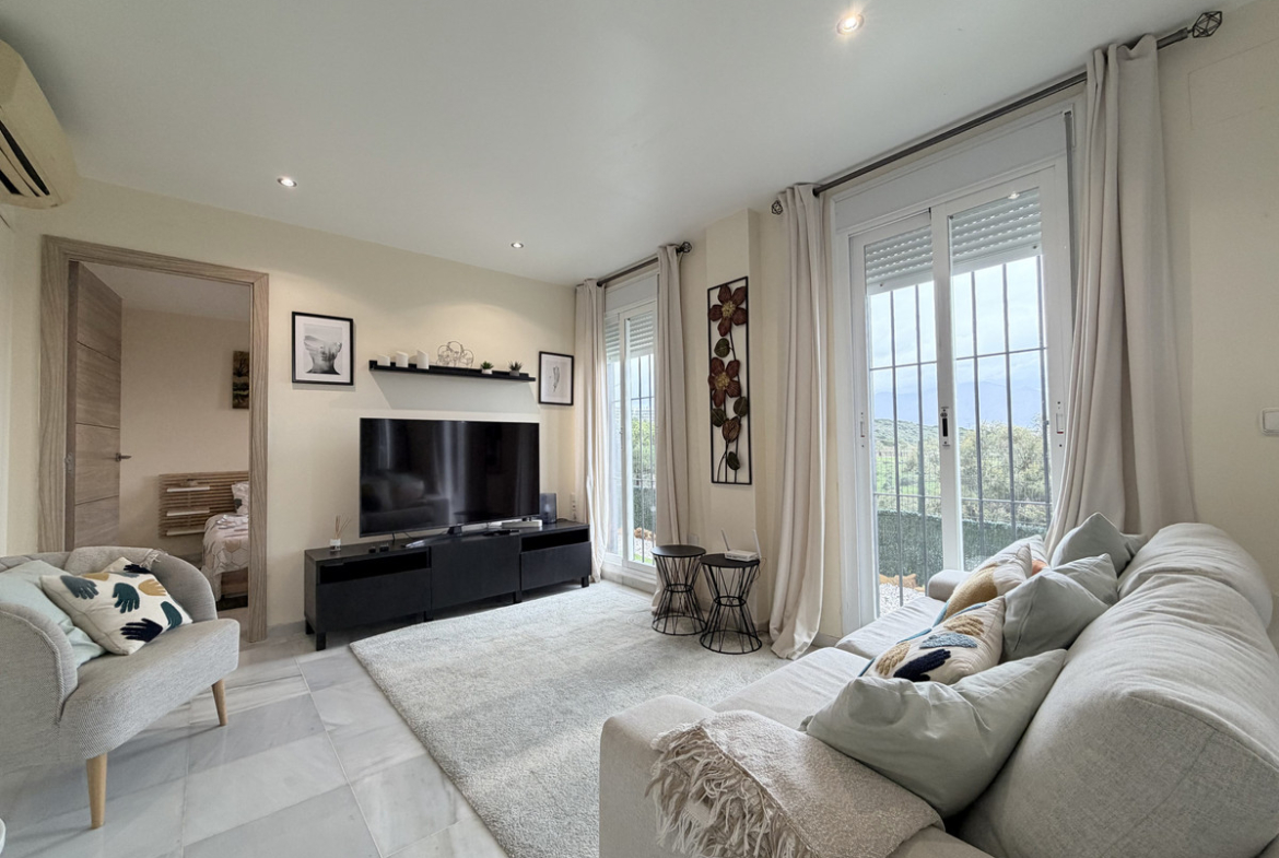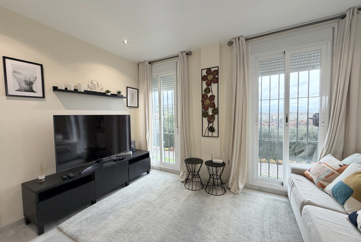 The standout feature is the large private garden overlooking the golf course, with open views of the Mediterranean and surrounding mountains — perfect for enjoying the Costa del Sol lifestyle all year round.