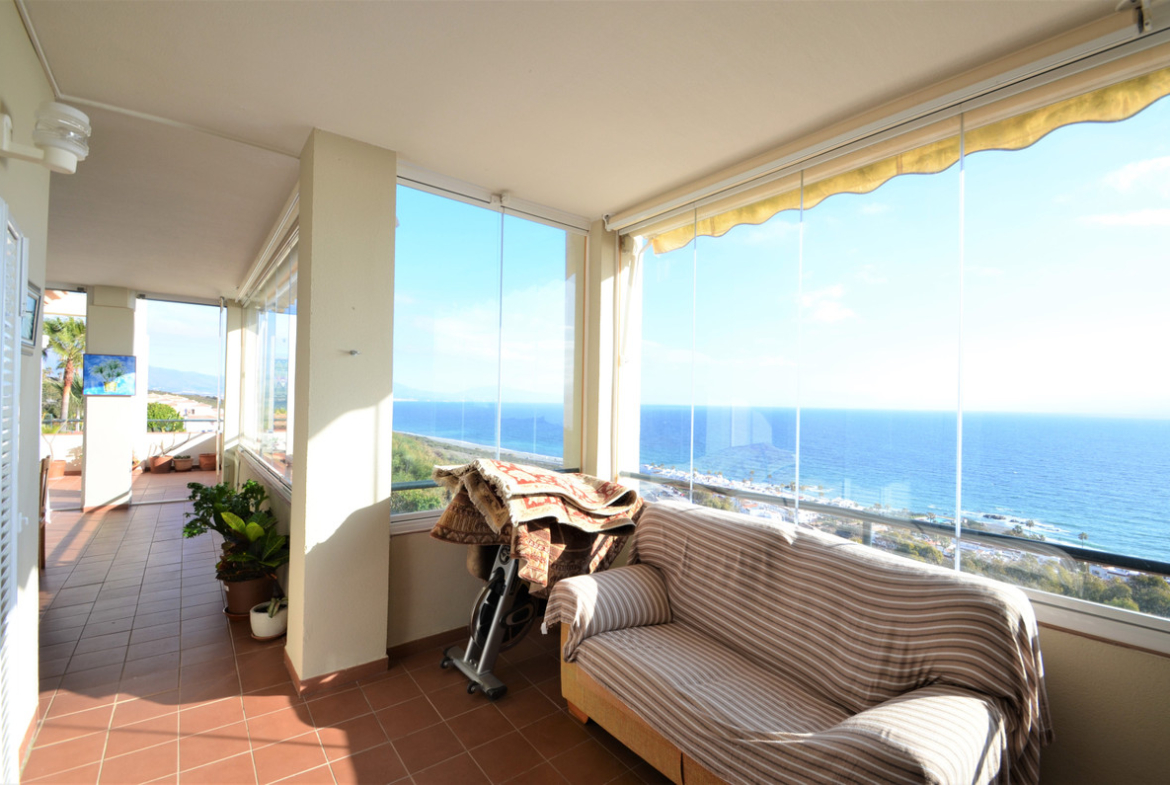Magnificent FIRST FLOOR APARTMENT with spectacular sea views, located in an urbanization area at a short distance from Sotogrande harbour and close the beach. In impecable condiction, the apartment offers charming living room with fireplace and access to the private terrace, completely equipped kitchen, separate dining area, 2 garage spaces and 1storeroom. .. Built to an excellent high standard.