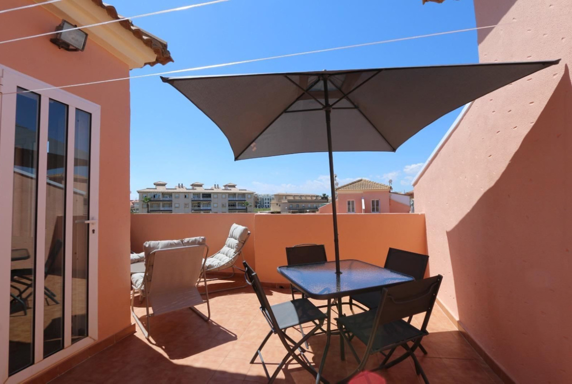 A home to enjoy – every day feels like a holiday Welcome to this homely apartment on two floors, with a sunny southeast orientation and a warm, inviting atmosphere. With its 104 square meters of built area, of which 90 are efficiently arranged, the home offers plenty of space for both relaxation and socializing. Here you live in a quiet and well-kept area with lush surroundings and access to a lovely communal pool – perfect for enjoying long, sunny days.