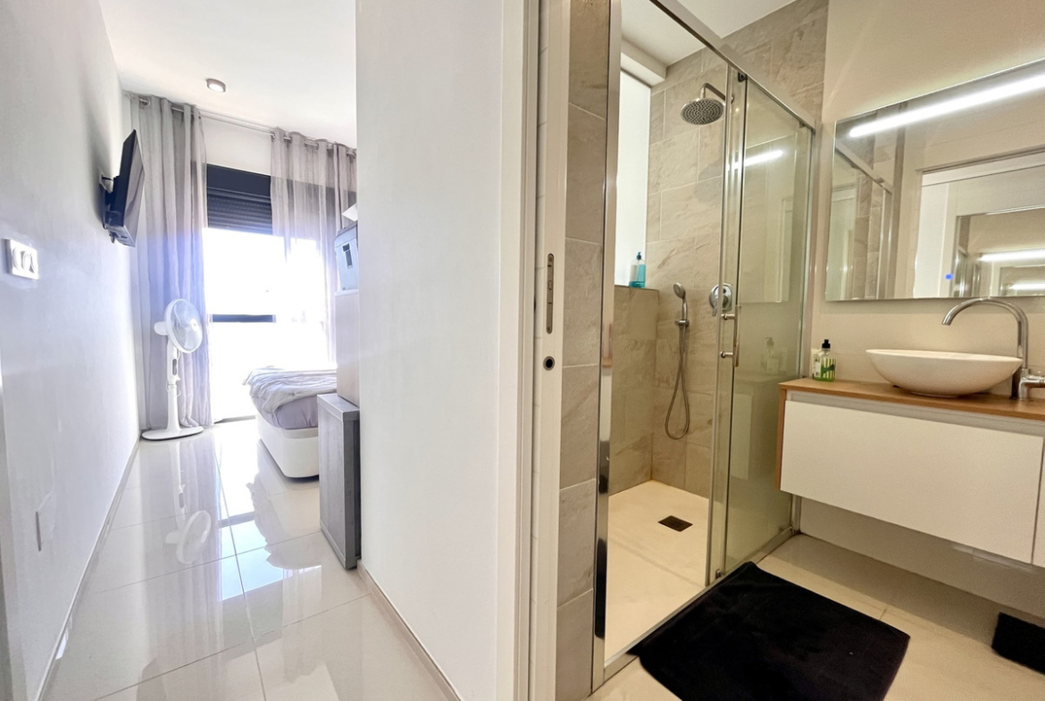 This stunning resale 3-bedroom, 2-bathroom penthouse in Los Dolses, near La Zenia, offers the perfect combination of modern comfort and Mediterranean charm. Located in a prestigious gated complex, this penthouse boasts a private solarium, stunning views, and access to top-class facilities, including a communal gym and swimming pools.