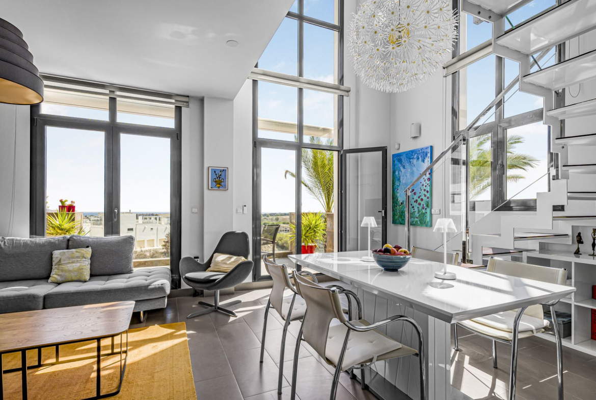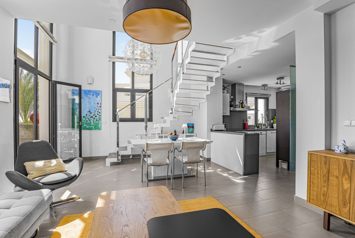 This home is situated on the first floor of the sought-after Danubio 1 complex in Las Ramblas and offers a total living space of 97.3 m² spread over two levels. On the main floor you are welcomed by a bright and generous living area with direct access to a charming terrace of almost 12 m². The floor also features a fully equipped kitchen, two well-lit bedrooms and a bathroom. An internal staircase leads to the upper level, which can easily be used as a third bedroom, home office or hobby room. From this level you access the impressive private roof terrace of 79 m², offering open views, sunshine throughout the day and ample space for relaxation, social gatherings and enjoyable barbecue evenings.