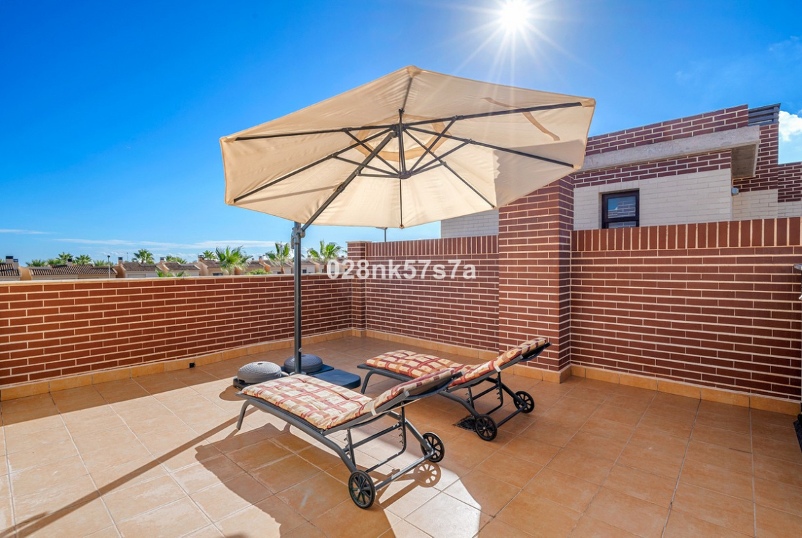 The location is very convenient, with daily services within walking distance. Just 550 metres away there is a modern centre with restaurants, a supermarket and a rooftop lounge bar. In addition, the well-known La Zenia Boulevard shopping centre is close by, offering a wide range of shops, dining options and leisure activities. Several golf courses can be reached within a short drive, while the beaches of Campoamor and Cabo Roig are easily accessible by bike in around 15 minutes.