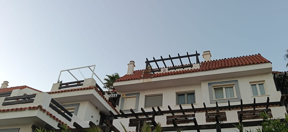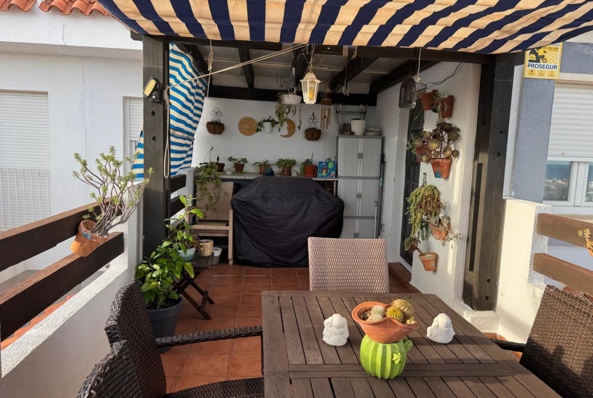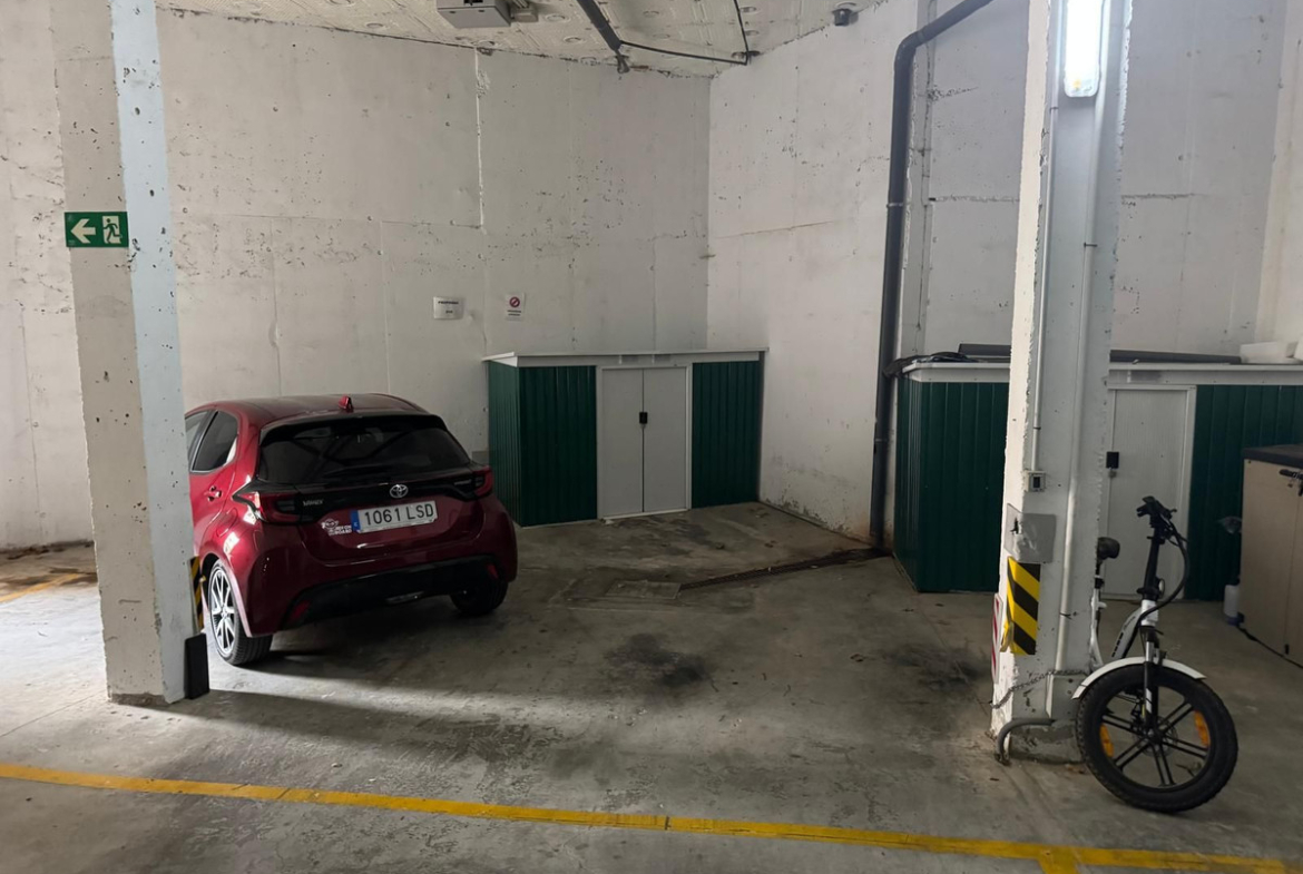 The duplex flat is accessible via the front on the ground floor, while the rear, with views of the sea and the surrounding area, is located higher up, hence the penthouse. The covered parking spaces have a total area of 82m², making it easy to park 1-2 cars. These are located on the other side of the flat, a few metres from the entrance.