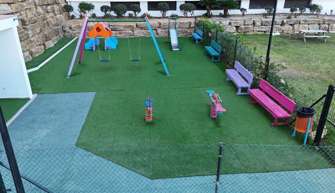 The property is part of a well-maintained gated community offering lush tropical gardens, two swimming pools (one for children), two tennis/padel courts, and a large, fully equipped playground where kids can play safely all day long.
