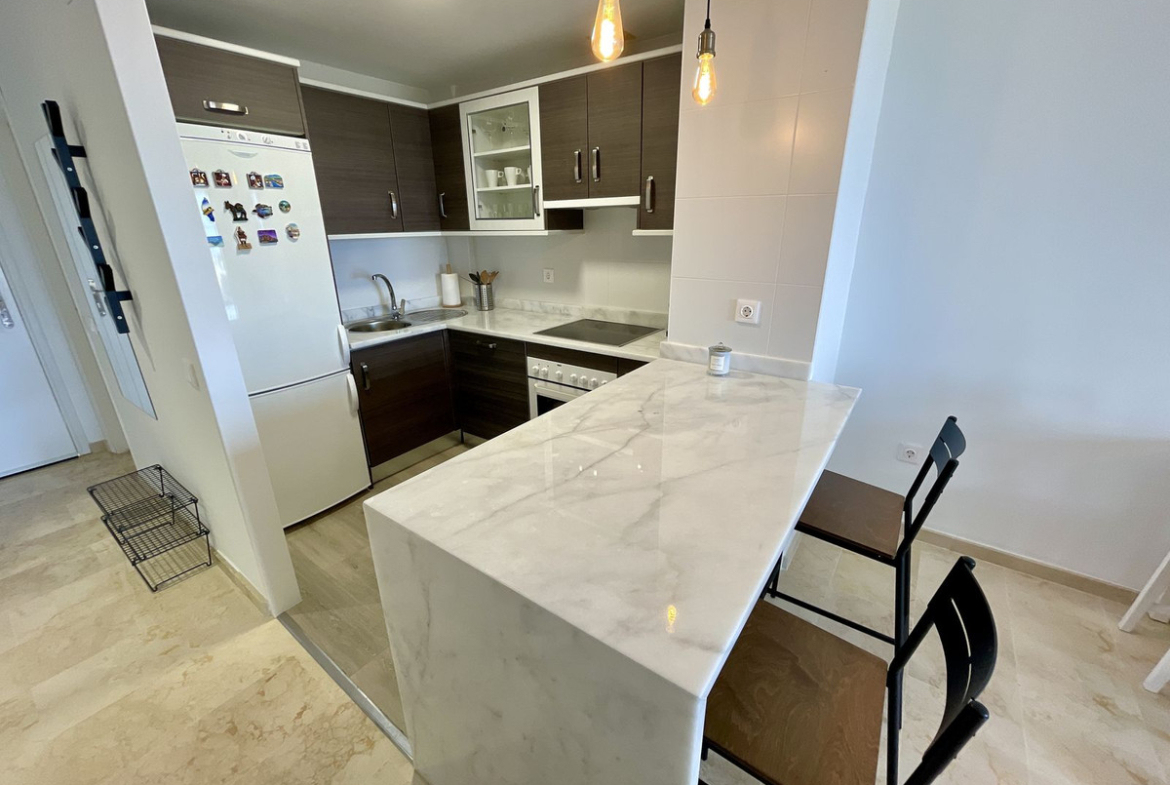 This 3 Bedroom, 1 1/2 bathroom 1st floor property is in one of the best blocks at Small Oasis, Manilva. Why? Unobstructed sea and mountain views. This property is appealing not only due to the easy low maintenance holiday set up, but due to it already having the Andalusian Tourist License with a consistent book of business.