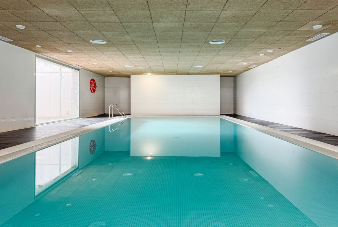 The two guest bedrooms are generously sized doubles, with fitted wardrobes and large windows overlooking the landscaped green areas. The property also features two full bathrooms, ensuring maximum comfort and privacy.