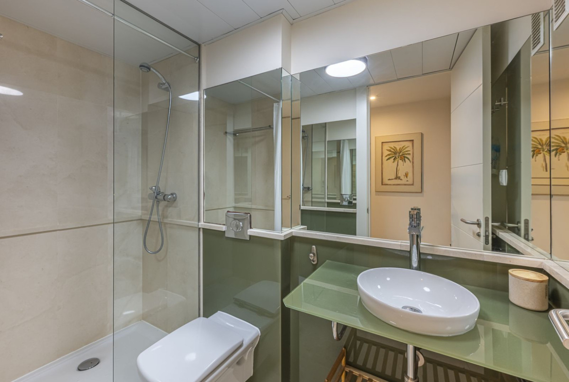 The air conditioning was replaced last year. The terrace has an additional glass curtain. The apartment comes with two parking spaces in the underground garage and a storage unit.