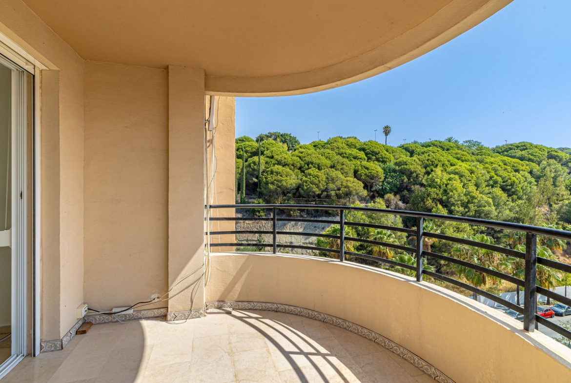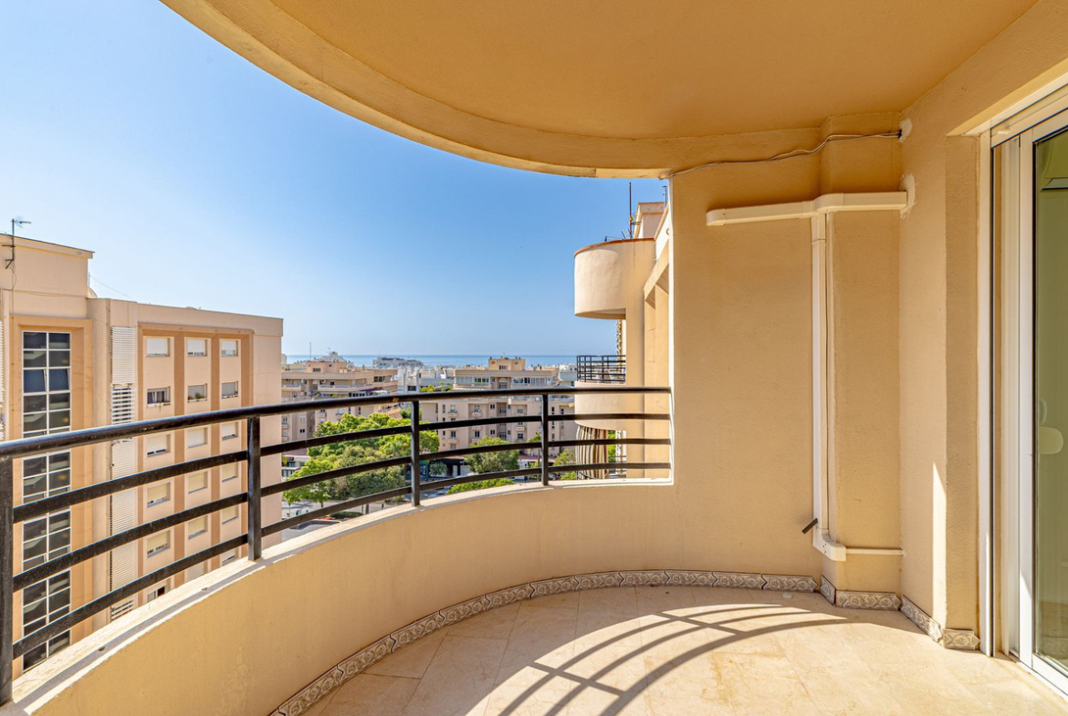 Impeccable top floor apartment in the heart of Marbella, just a 5-minute walk from the beach and the promenade, and next to supermarkets and shops. The property was renovated very recently, and features: a living/dining room with access to the terrace offering beautiful sea views, a master bedroom with en-suite bathroom, two further bedrooms each with their own bathroom, a fully equipped kitchen, and a laundry room. The complex has a swimming pool and garden, and a secure communal car park.