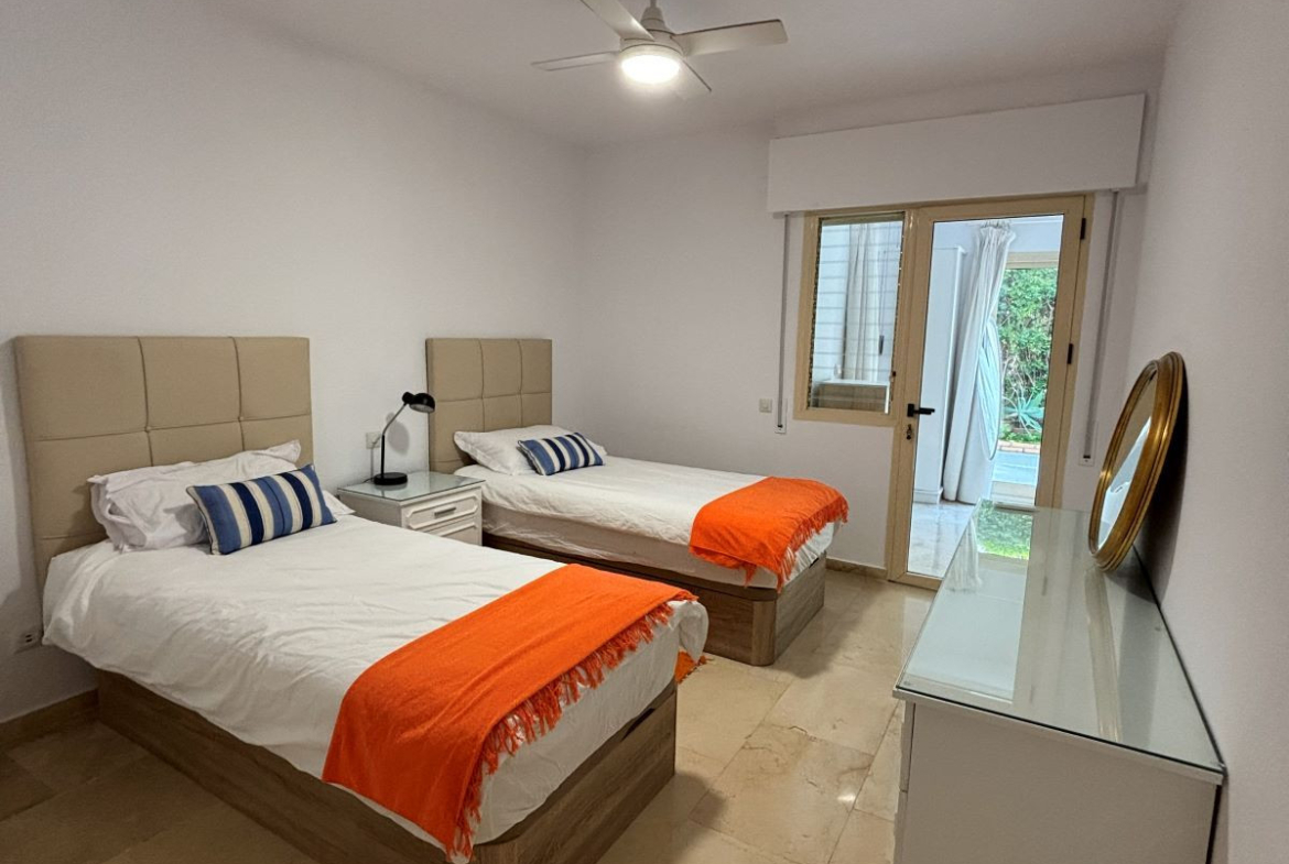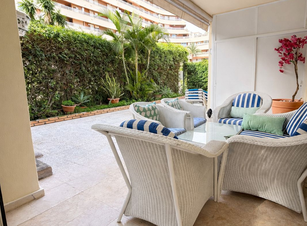This exceptional large three-bedroom ground floor apartment is located in the well-known Parque Marbella building, right in the heart of Marbella. One of its standout features is the impressive 80m² private terrace, perfect for outdoor dining, entertaining, or enjoying the Mediterranean lifestyle all year round.