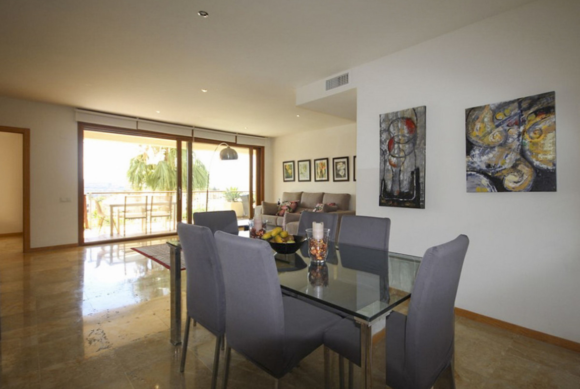Lomas de los Monteros, Marbella East. This beautiful elevated ground floor apartment boasts 150 square meters of living space, featuring three spacious bedrooms, all with built-in wardrobes, two full bathrooms, and a guest toilet.