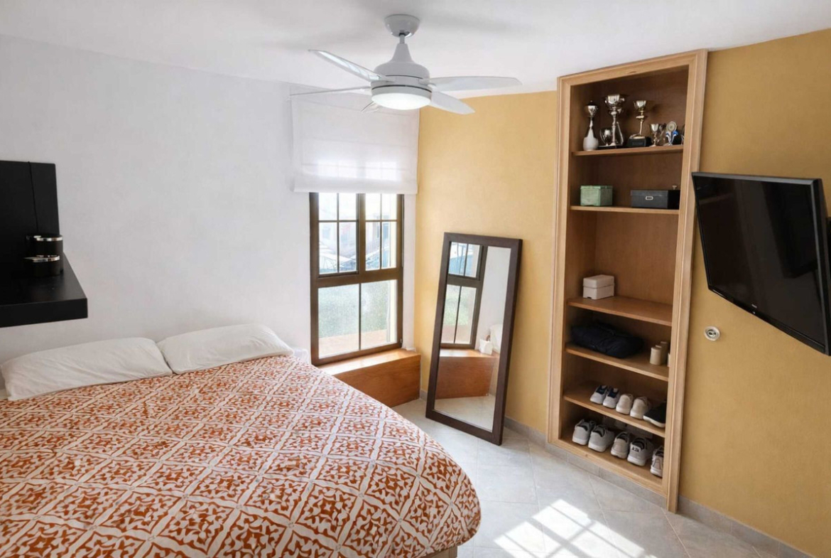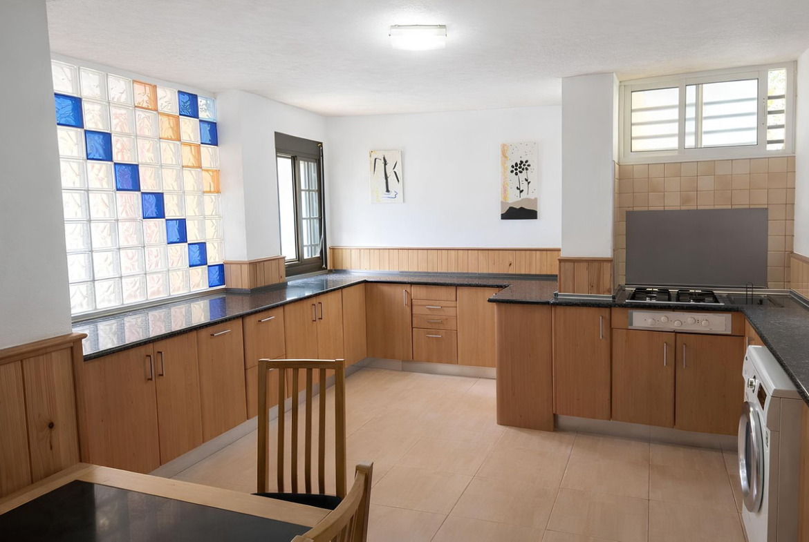 The property offers a generously sized separate kitchen, ideal for those looking for functionality and space. The living room stands out for its spaciousness, as the terrace has been incorporated, creating a more open, bright and usable living area throughout the year.