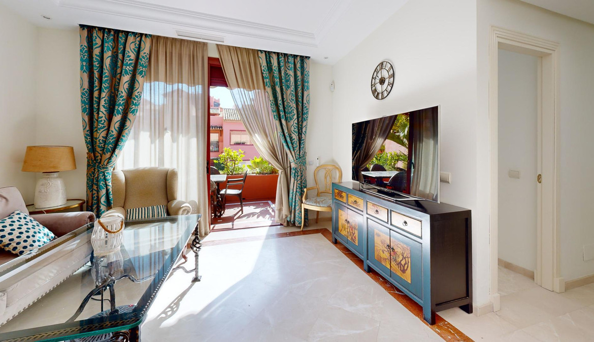 Jardines de Don Carlos, has three bedrooms and two bathrooms, and is ideal for those looking for comfort and an excellent location. It is located just a few metres from the beach in Elviria, which makes a perfect choice for enjoying the sea and the sun.