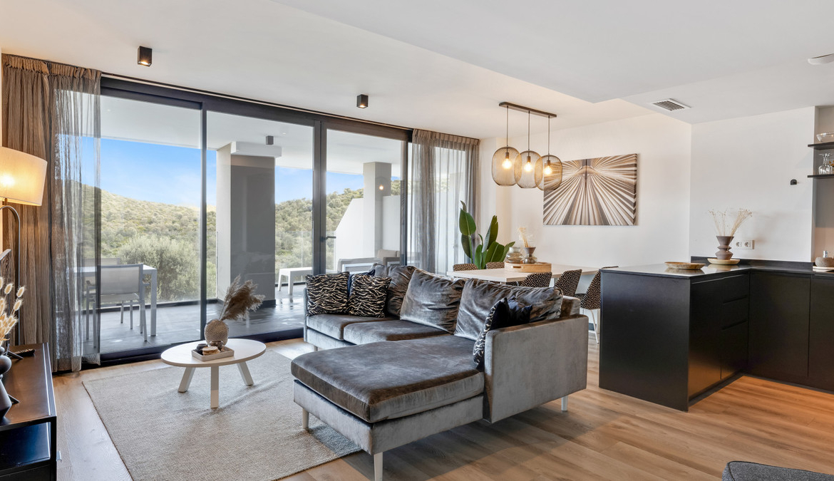 This spacious and bright apartment offers a modern layout with an open-plan living and dining area that flows seamlessly onto a generous terrace, where you can enjoy very nice open views, the perfect setting for relaxing mornings or sunset evenings. The fully equipped kitchen is designed for comfort and functionality, while the three well-sized bedrooms provide ample space for family and guests. The two contemporary bathrooms are finished to a high standard, ensuring both style and practicality.