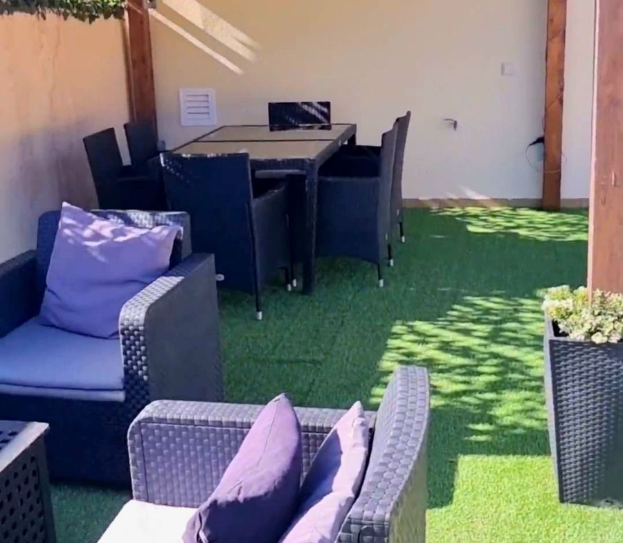 Designed to maximise light, comfort and style, the interior offers a spacious and luminous living-dining area with a bioethanol fireplace and pre-installation for a traditional fireplace, creating a refined yet cosy ambiance throughout the year. The property comprises three double bedrooms with fitted wardrobes and three bathrooms, one of which has been adapted for laundry and storage purposes. The bathrooms feature elegant finishes, including a designer walk-in shower and a bathtub, combining functionality with modern design.