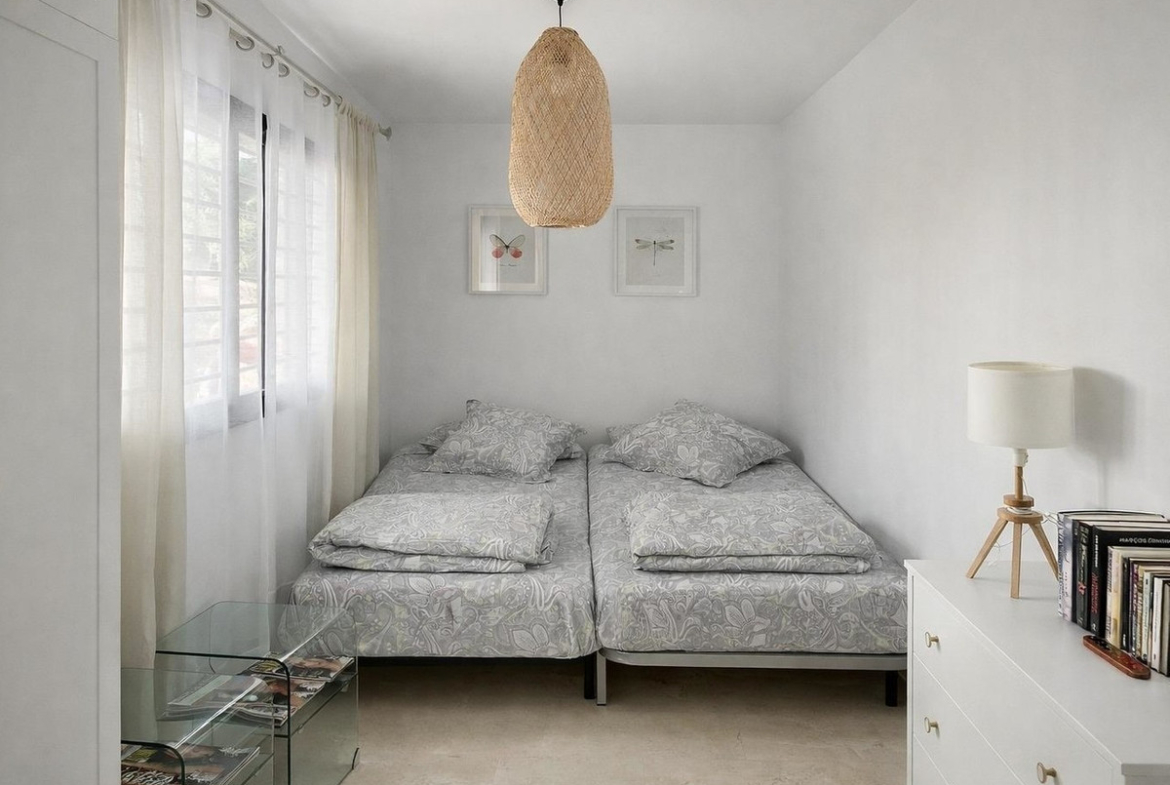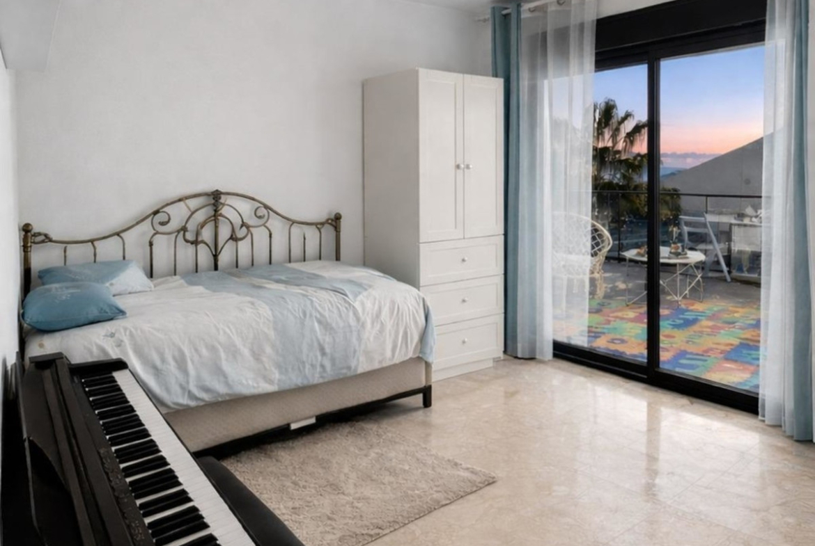 The home features high‑insulation glass windows throughout and electric blinds in the bedrooms, enhancing both energy efficiency and everyday convenience. One of its standout highlights is the generous 35 m² terrace, perfectly positioned to enjoy south‑facing views across the communal swimming pool and the Mediterranean coastline.