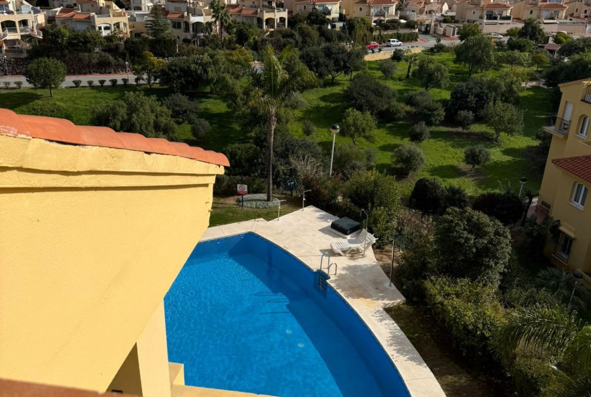 The residential complex offers three swimming pools, well-maintained tropical gardens, and extensive green areas, ideal for enjoying the Costa del Sol climate all year round.