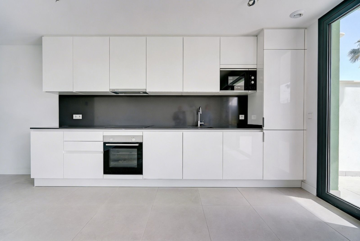 Inside, the property offers a bright, modern open-plan design with a spacious living area and a fully fitted kitchen complete with high-quality appliances. Large sliding doors connect the interior seamlessly with the terrace, maximising natural light and indoor-outdoor living. The master bedroom features an en-suite bathroom and direct access to the terrace, while all bedrooms include fitted wardrobes and elegant finishes such as large-format porcelain flooring. The apartment also benefits from two full bathrooms and an efficient hot and cold air conditioning system.