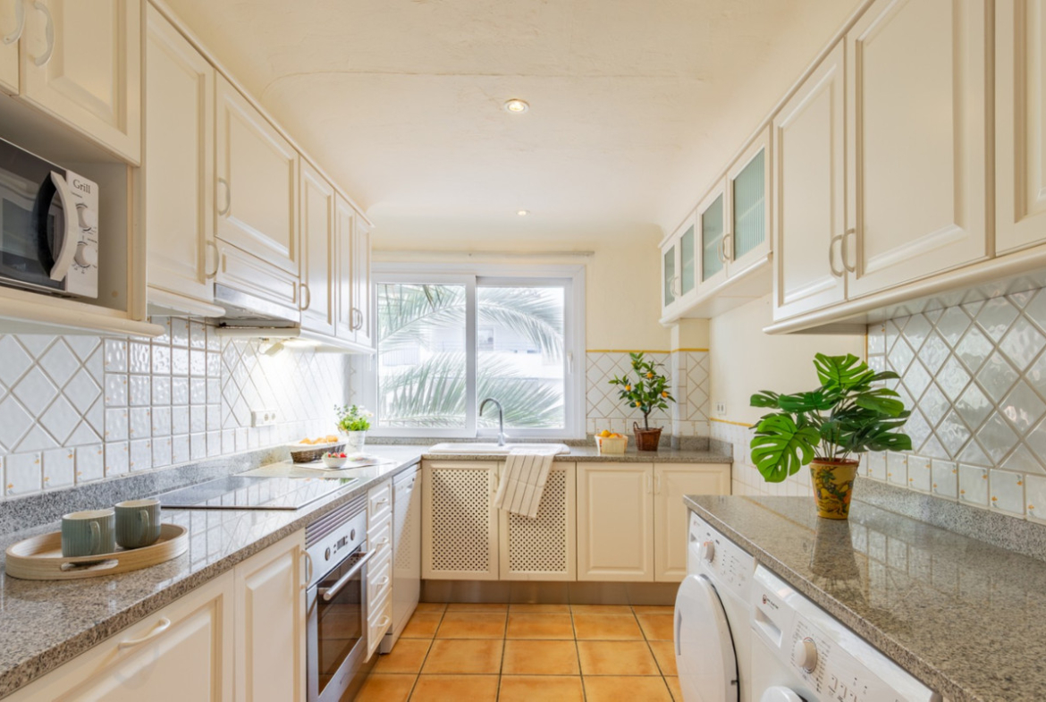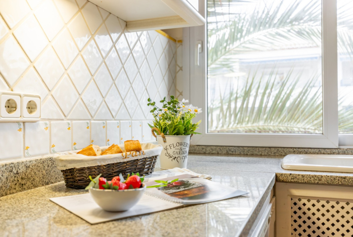 True luxury is space and order. From the entrance hall, the storage capacity surprises with discreetly integrated built-in wardrobes, a comfort detail that is repeated in each of the three double bedrooms. Daily life is made easier with a spacious, fully equipped independent kitchen designed for enjoying cooking without feeling cramped.