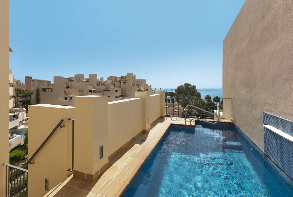 Stunning 3 bed duplex with private rooftop pool located in the exclusive beachfront urbanisation Bahia de la Plata.
