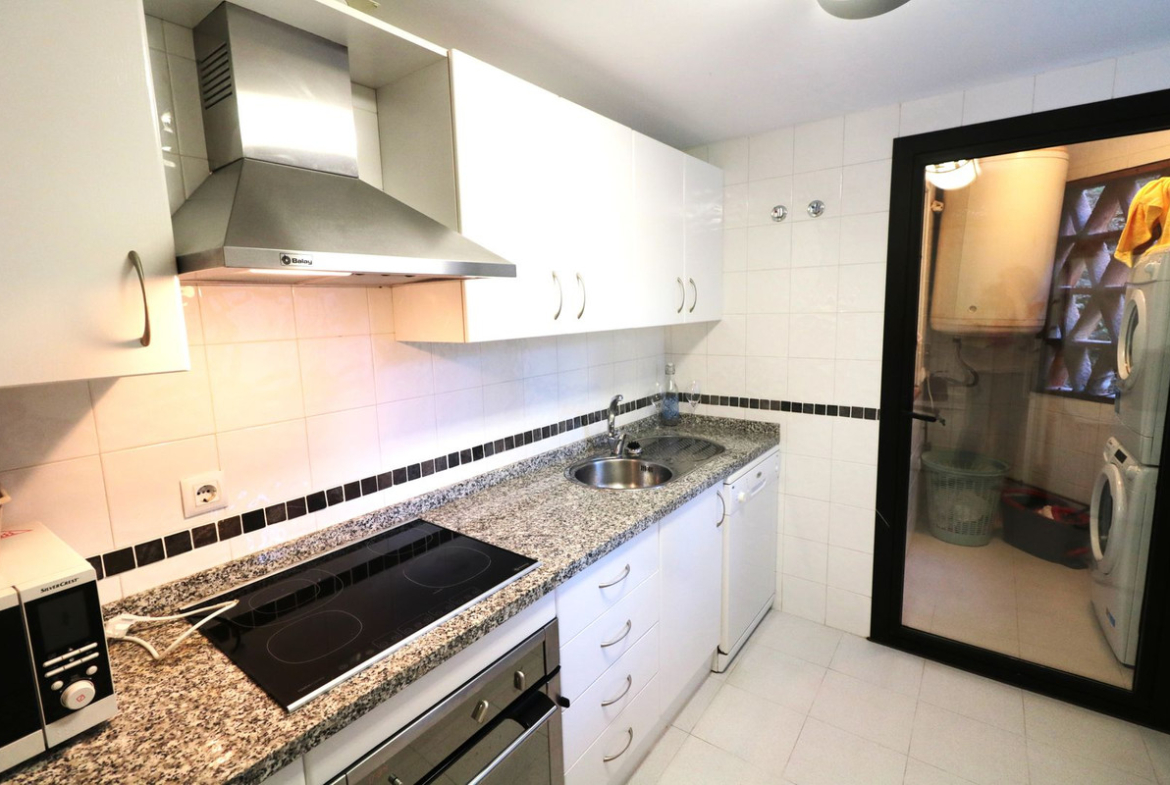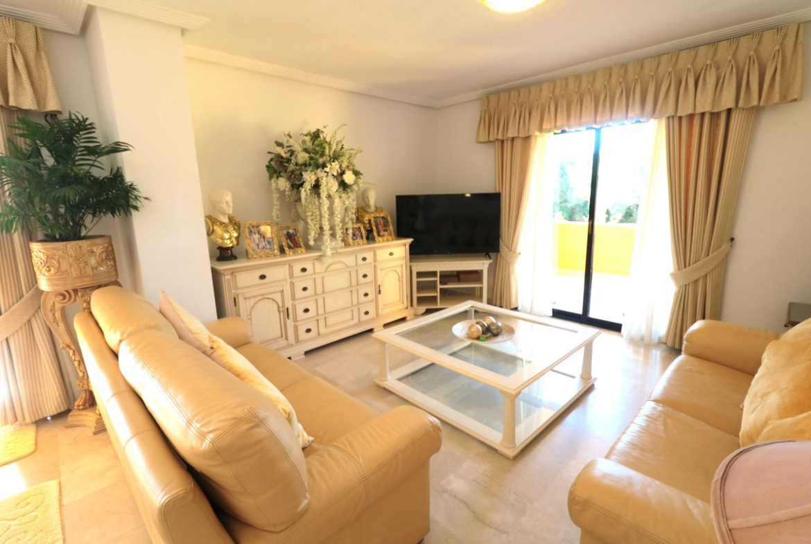 Huge groundfloor apartment in the sought after enclave of Selwo in a gated and very maintained urbanisation, just 5 minutes by car from the beach and the Sonora Beach Restaurant and golf courses and 10 minutes drive to Estepona or the famous Puerto Banus.