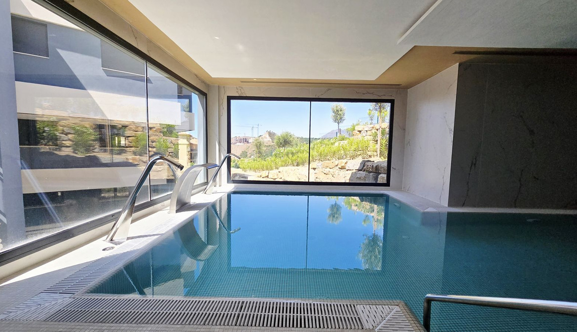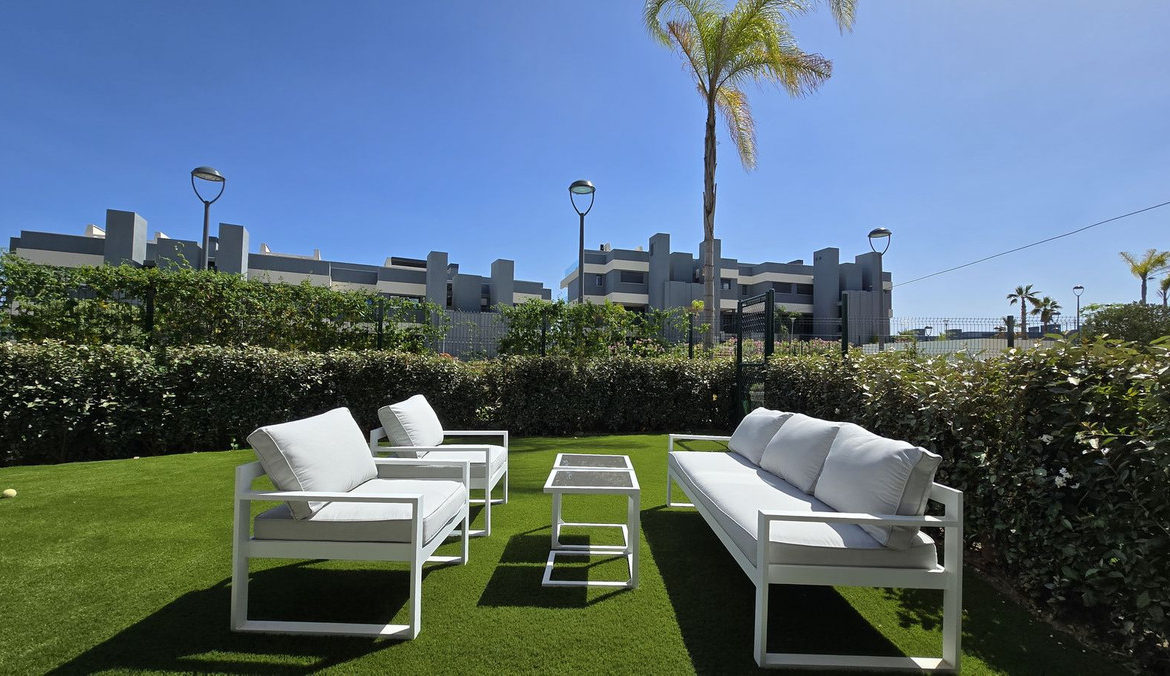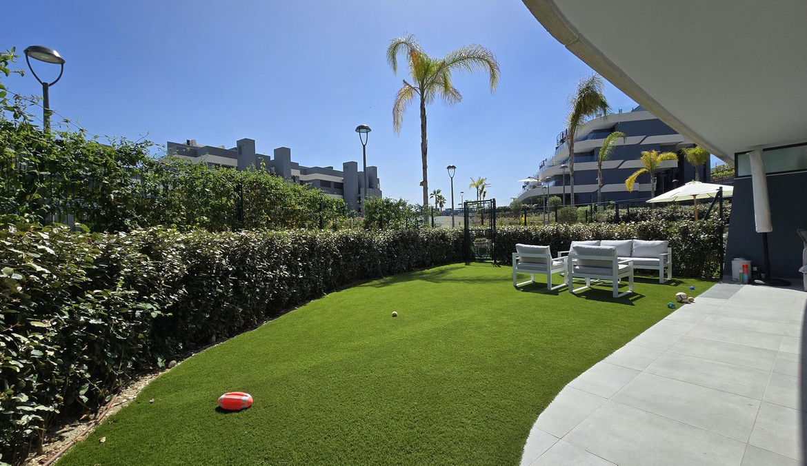 Between Estepona and Puerto Banus Modern 3 bedroom 2 bathroom corner ground floor apartment with wonderful garden and swimming pool views