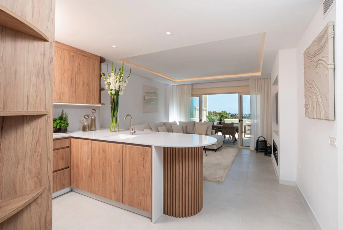 Located in the prestigious residential enclave of La Cerquilla in Nueva Andalucía, this beautifully updated apartment offers modern design, refined finishes, and captivating views.