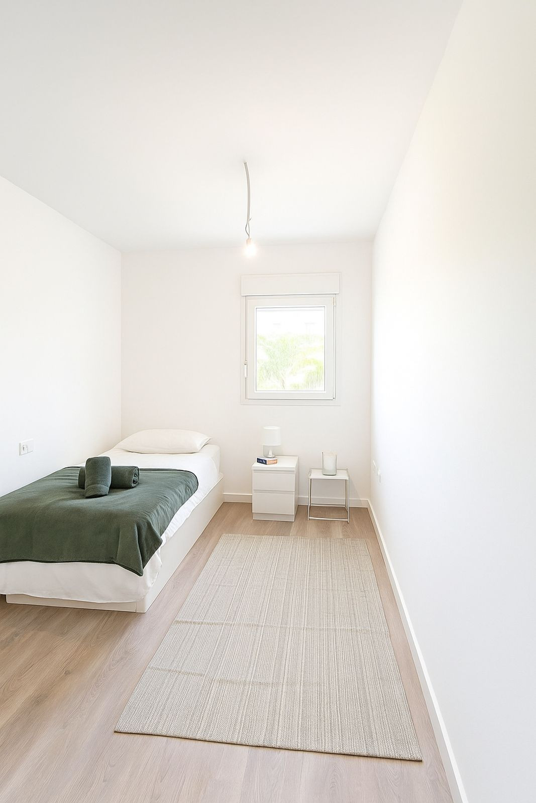 The living room is spacious and bright, creating a cozy atmosphere. The kitchen, well equipped and with a laundry room. The location is excellent, close to all the necessary services: supermarkets, cafes, schools and public transport, which makes daily life very comfortable.