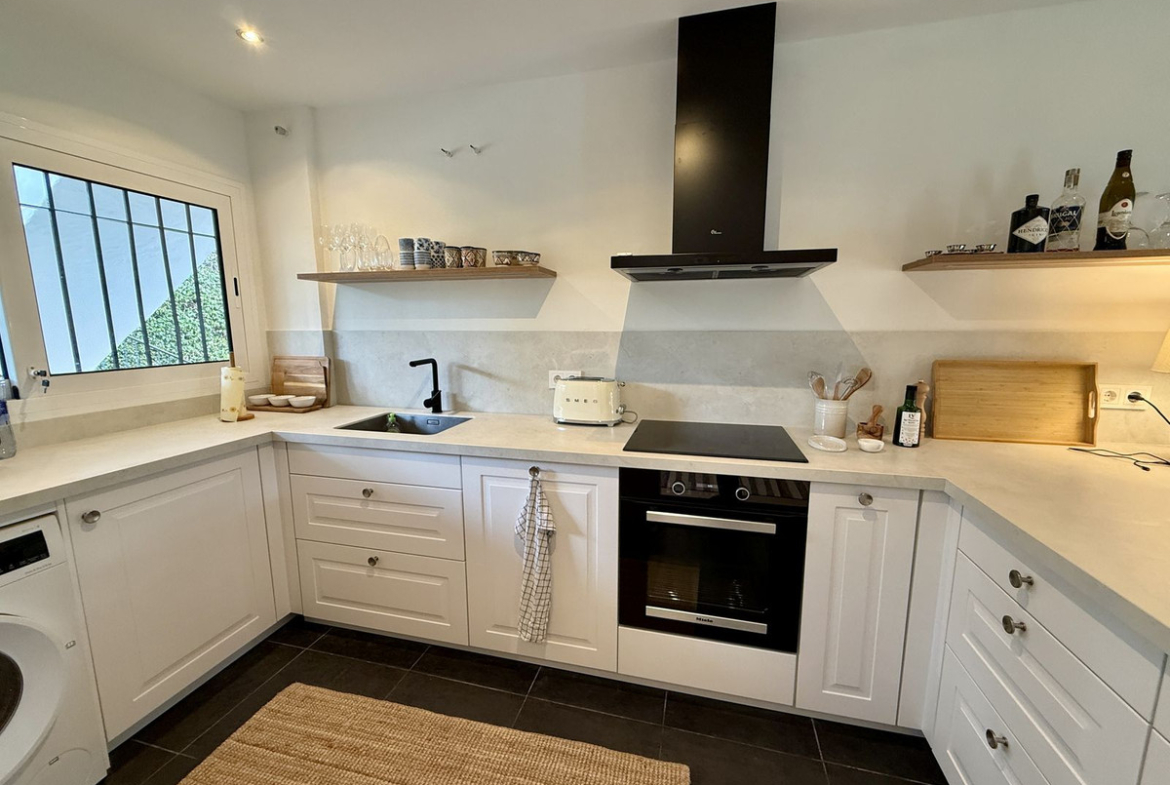From the living room, you have direct access to a south-facing terrace overlooking the inviting swimming pool and beautifully landscaped communal gardens – perfect for relaxing and enjoying the Mediterranean lifestyle.