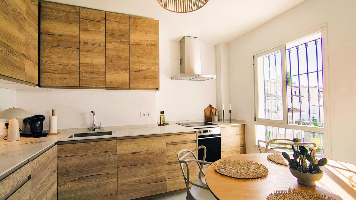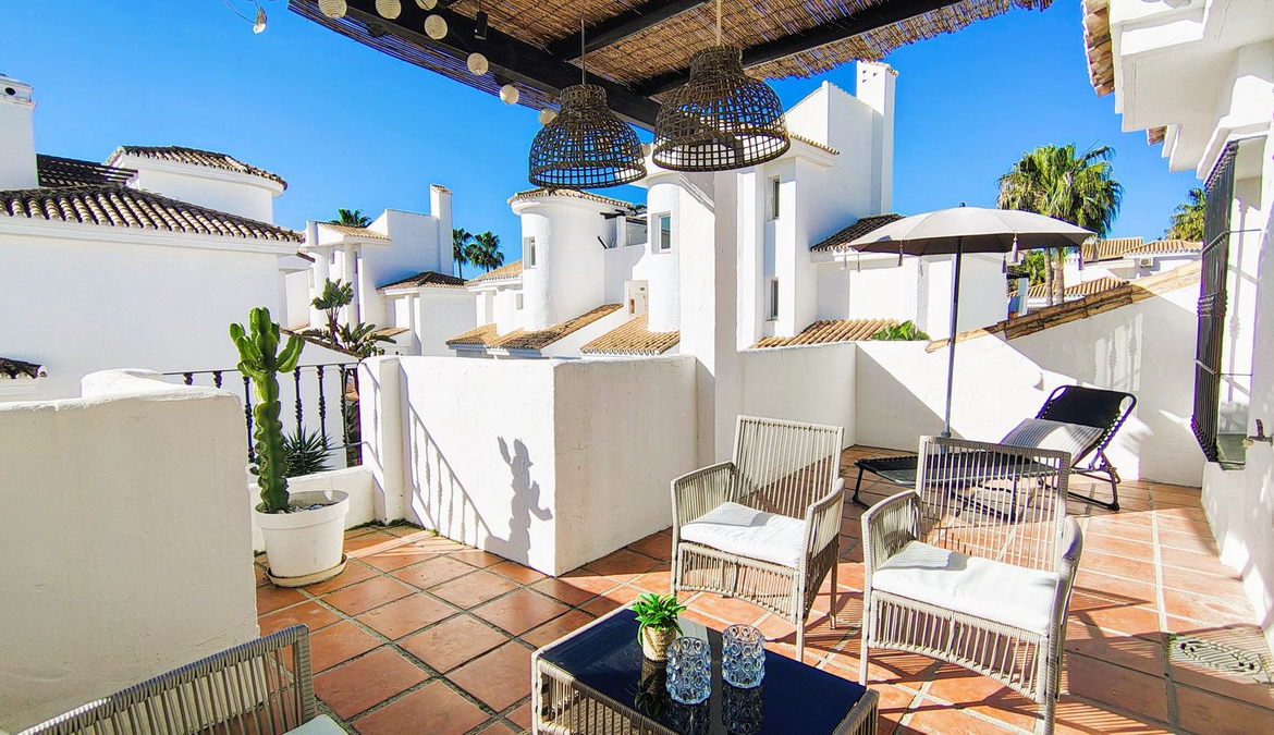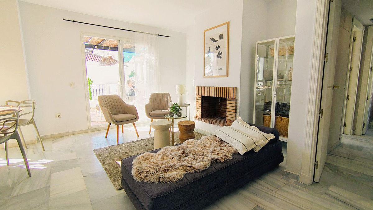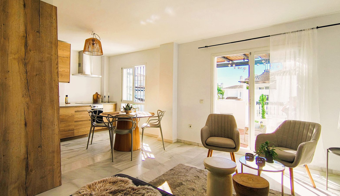 Fully renovated duplex penthouse in Los Naranjos, Nueva Andalucía. It features 3 bedrooms, 2 bathrooms, and south orientation. Gated community with 24h concierge, Mercadona supermarket, and two schools within walking distance. Only 1,800 m from Puerto Banús. Holiday rentals allowed. Currently under renovation, available in a few days.