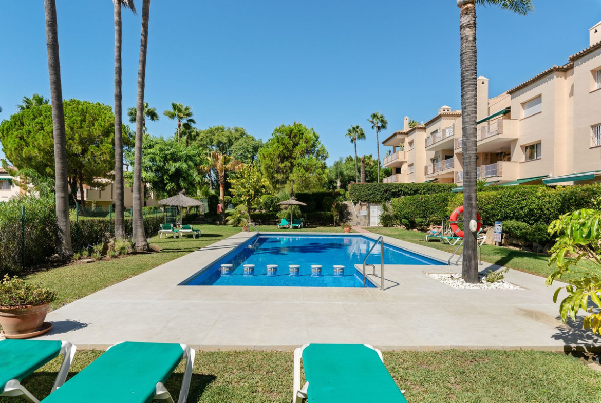 This stunning, fully furnished ground floor apartment offers 3 bedrooms and 2 bathrooms, located within a secure, gated development of just 18 residences. Residents enjoy access to two pristine swimming pools and beautifully maintained communal gardens.