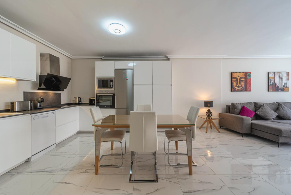 It consists of 3 bedrooms and 2 bathrooms, one of which is en-suite, a fully equipped open-plan kitchen connected to the dining area and living room, and a terrace of approximately 15 m².
