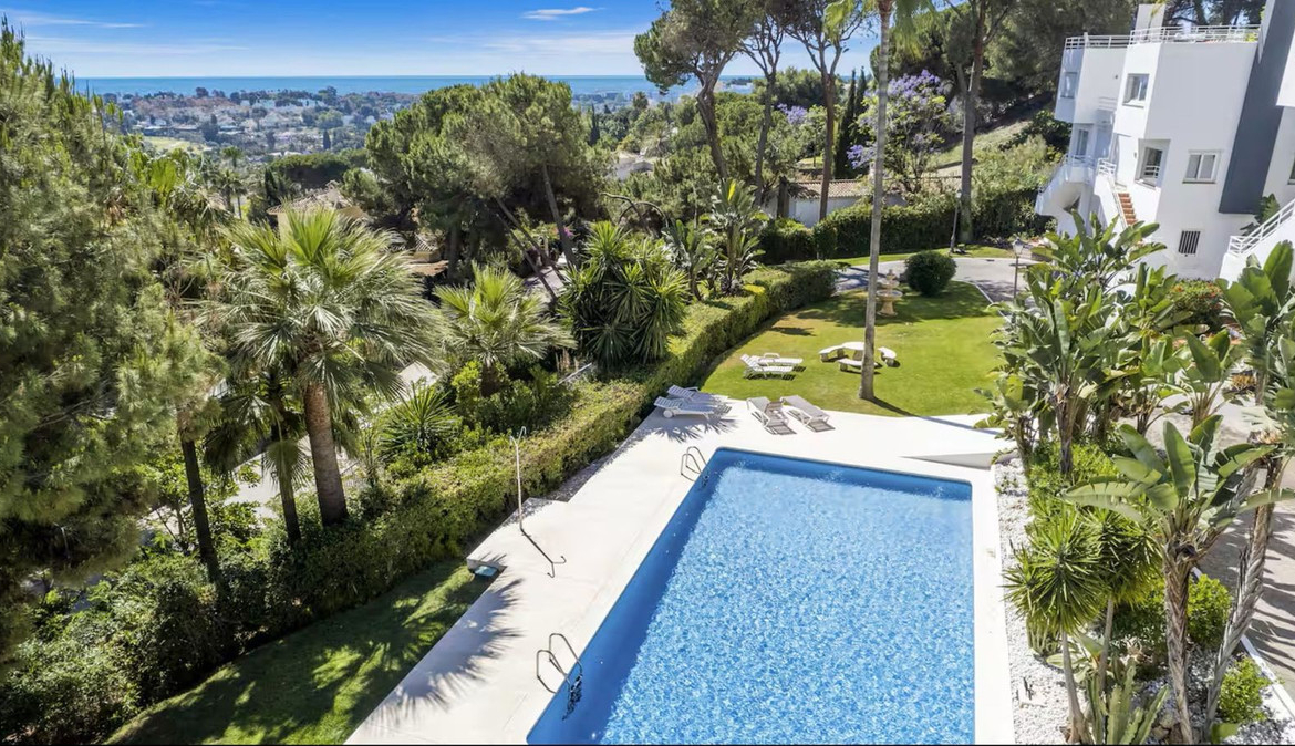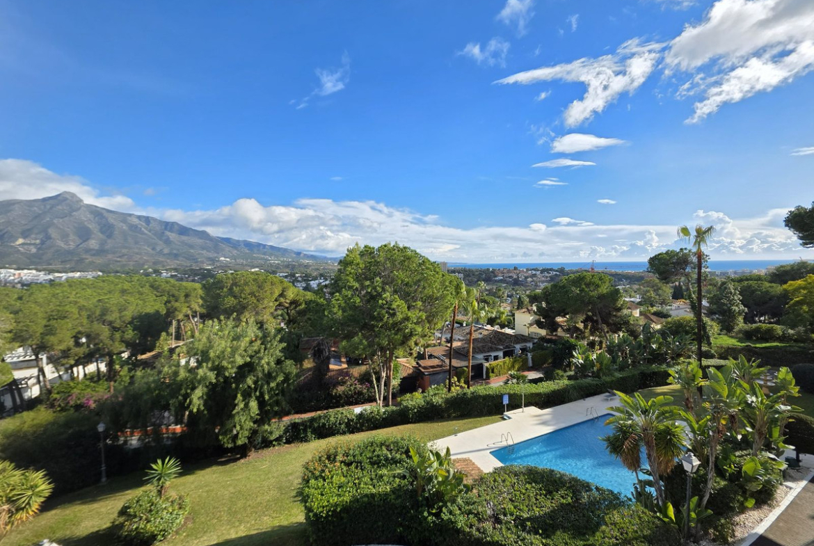 This beautiful corner apartment is nestled among pine trees, offering a truly tranquil setting while being very close to the heart of Nueva Andalucía just minutes from prestigious golf courses, Puerto Banús, and Marbella’s top restaurants and boutiques. From the moment you enter, the panoramic views of the Mediterranean Sea and La Concha mountain take center stage, creating an unmatched sense of home. A private path provides direct access to the property, and the fantastic outdoor sheltered spaces allow you to fully enjoy Costa del Sol’s weather all year round.