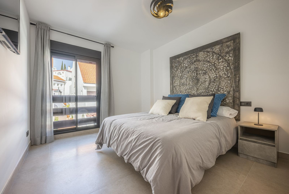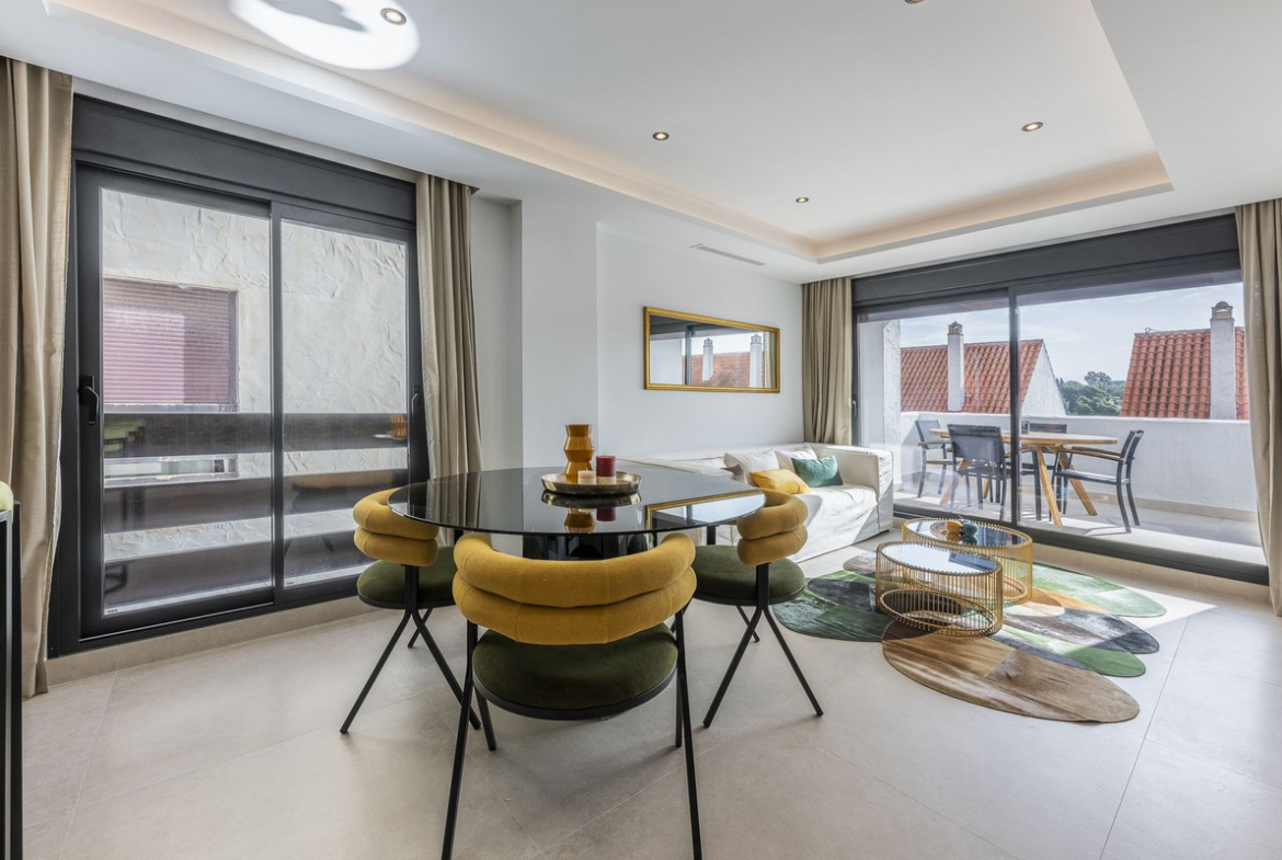 Luxury renovation in Nueva Andalucia. Top quality refurbishment with underfloor heating in the bathrooms and modern fire place. In la Maestranza, a closed development with 24 hours security, very well maintained gardens and green areas with 2 pools (one of them heated). Lovely mountain views with a built in electric BBQ for alfresco dining.The most popular shops and restaurants on your doorstep and only 15 minutes walk to Puerto Banus and the beach. It sold fully furnished so bring your suitcases and move in. Garage space is included in the price.