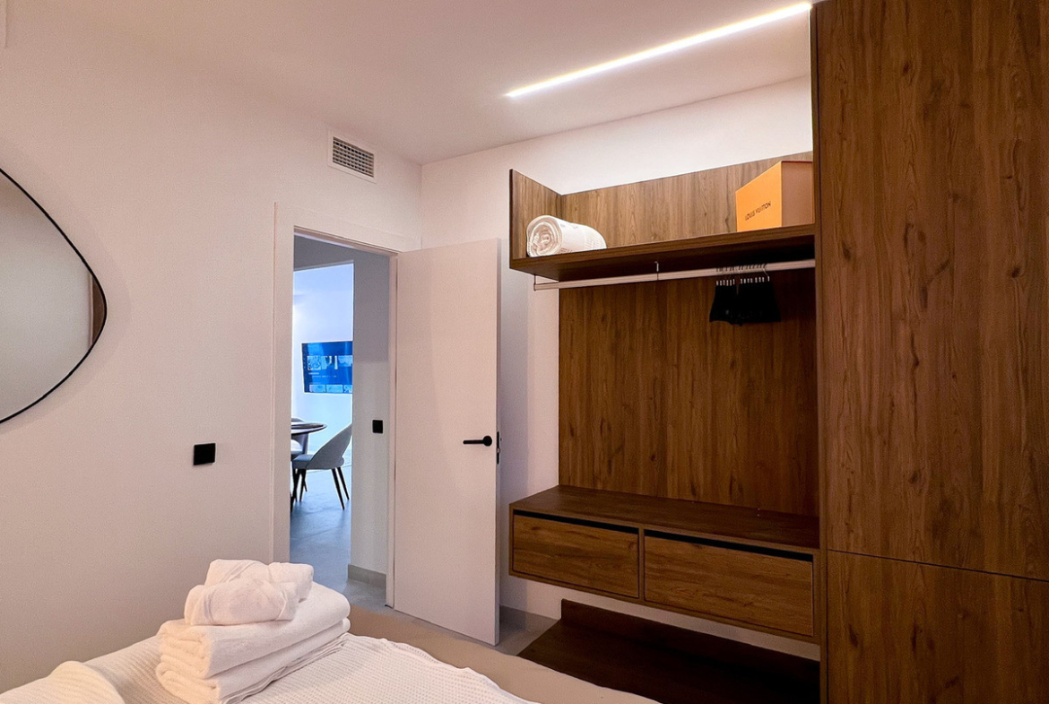 Open-Plan Style Wardrobes: Immerse yourself in the sleek and modern design of open-plan style wardrobes. A perfect blend of form and function, these closets complement the overall aesthetic of the apartment, adding a touch of sophistication to your living space.
