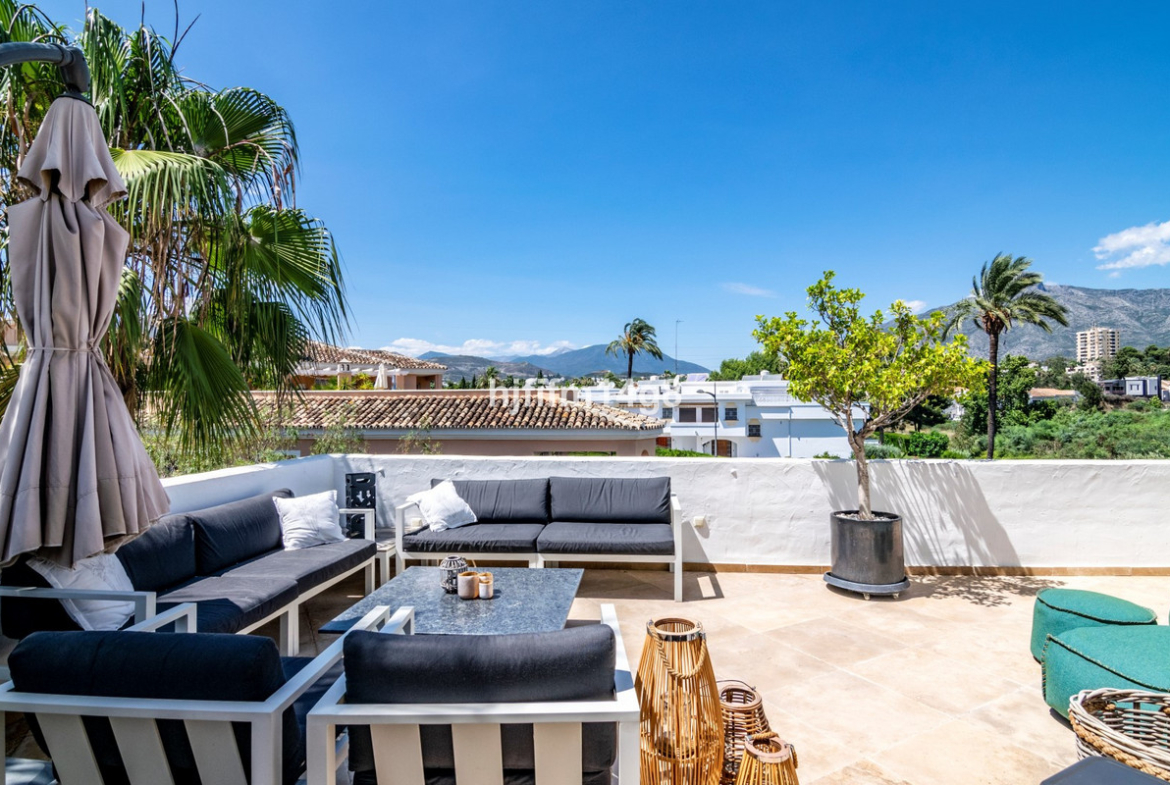 This is a renovated 3-bedroom duplex penthouse. Simply pack your bags and move in! This is a key ready property offering a complete hassle-free move in process for the new owner. On the entrance level you will find the open plan sleek kitchen, one-bedroom, bright living room and dining room and direct access out to the fantastic terrace. You cannot miss the incredible La Concha view from the living room, it looks like a photograph! Upstairs are two additional bedrooms.