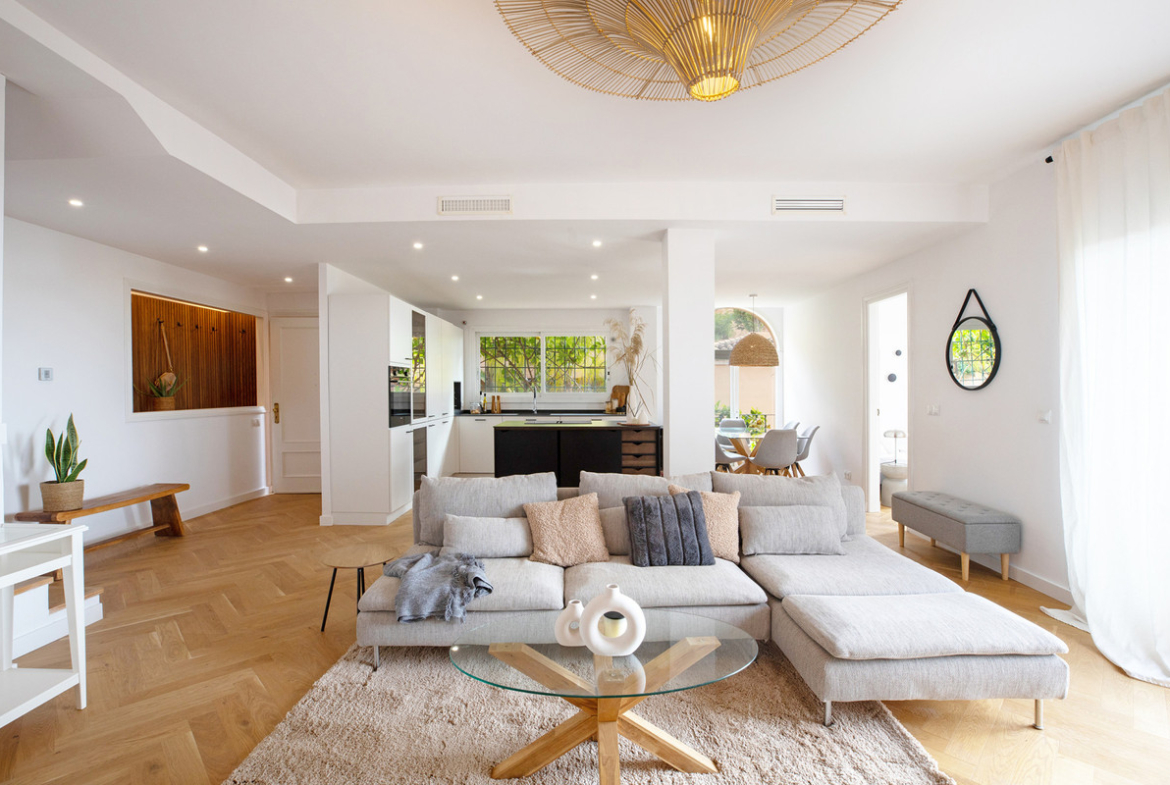 Open-Plan Living: A bright and airy layout with a seamless flow between the living, dining, and kitchen areas.