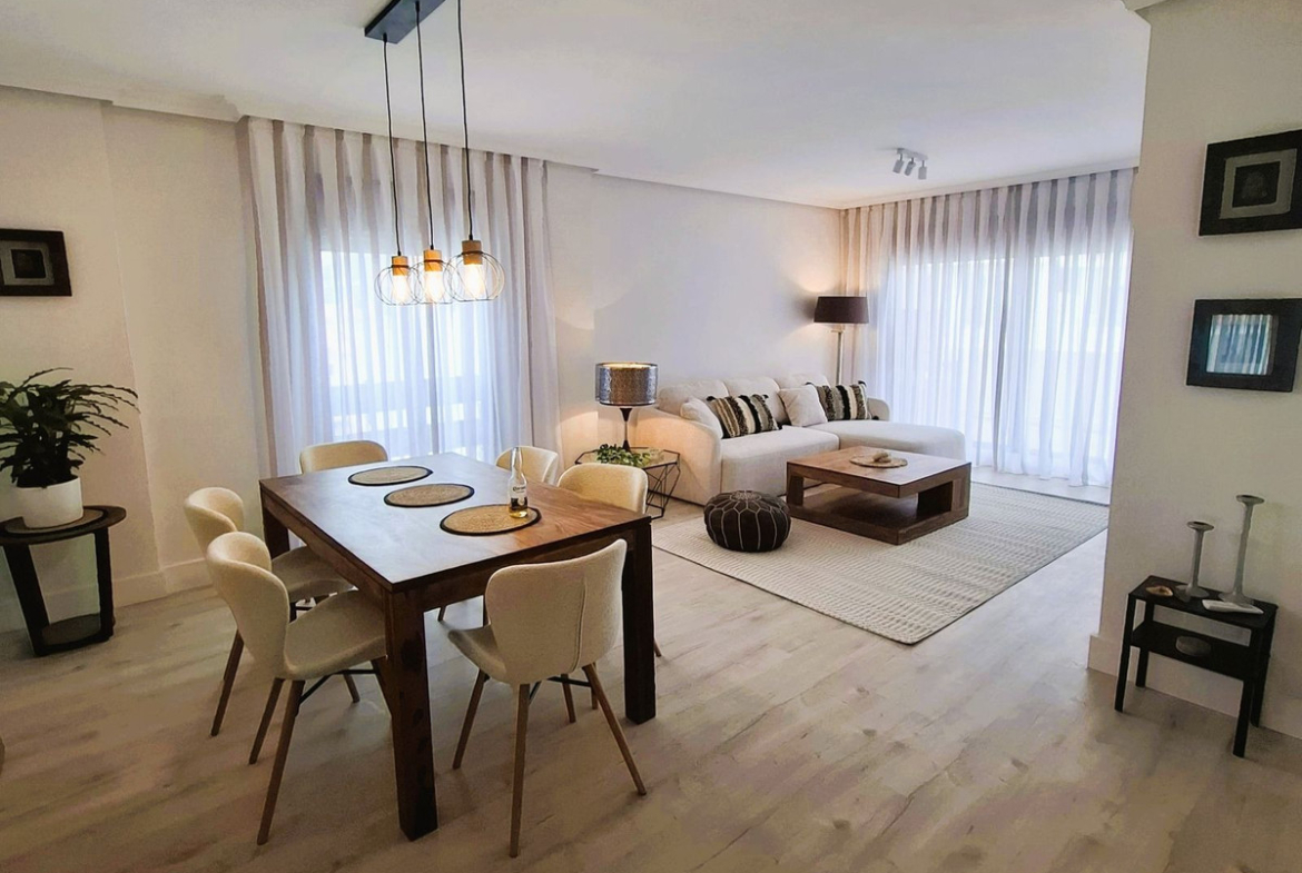 The spacious living / dining area is flooded with light and the views stretches to La Concha!