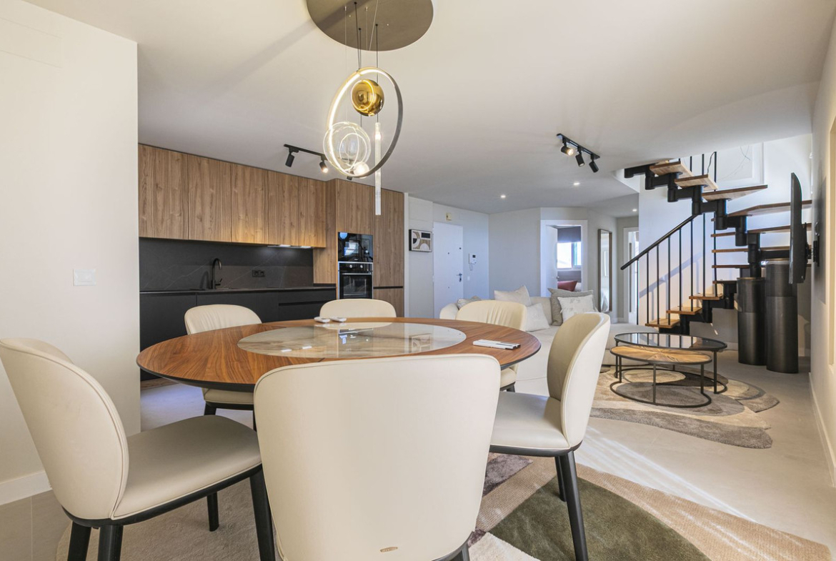 Discover the height of contemporary living in this stunning three-bedroom duplex penthouse, perfectly positioned within a prestigious gated community.