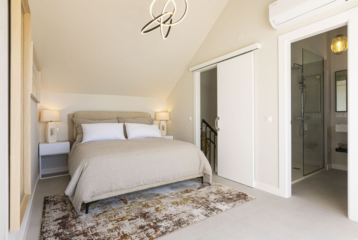 Upstairs, the private master suite is a true retreat, featuring its own luxurious bathroom and a sun-drenched terrace—perfect for basking in the golden afternoon light.