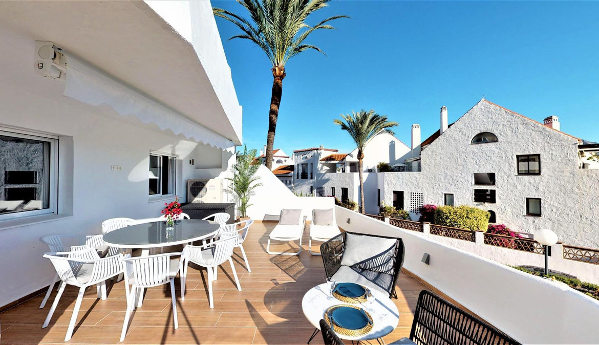 Located in the sought-after community of Jardines de Andalucía, this beautifully renovated first-floor apartment offers a prime location within walking distance of Puerto Banús, Centro Plaza Mall, Marbella Arena, and renowned dining venues such as La Sala Banús and Breathe Restaurant.