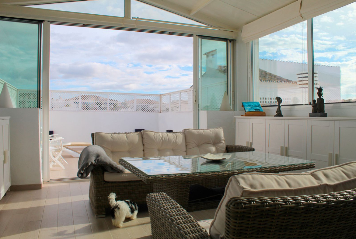 Fantastic fully refurbished penthouse in the well known private urbanization Jardines del Puerto, second line of Puerto Banus so is walking distance to the beach, ammenities and the Port. Tis Property has 208 m2 built and 55 m2 of terrace with partial sea view. Bright and sunny rooms. It has 1 underground parking and the complex has beautiful garden with 4 pools and tennis court.