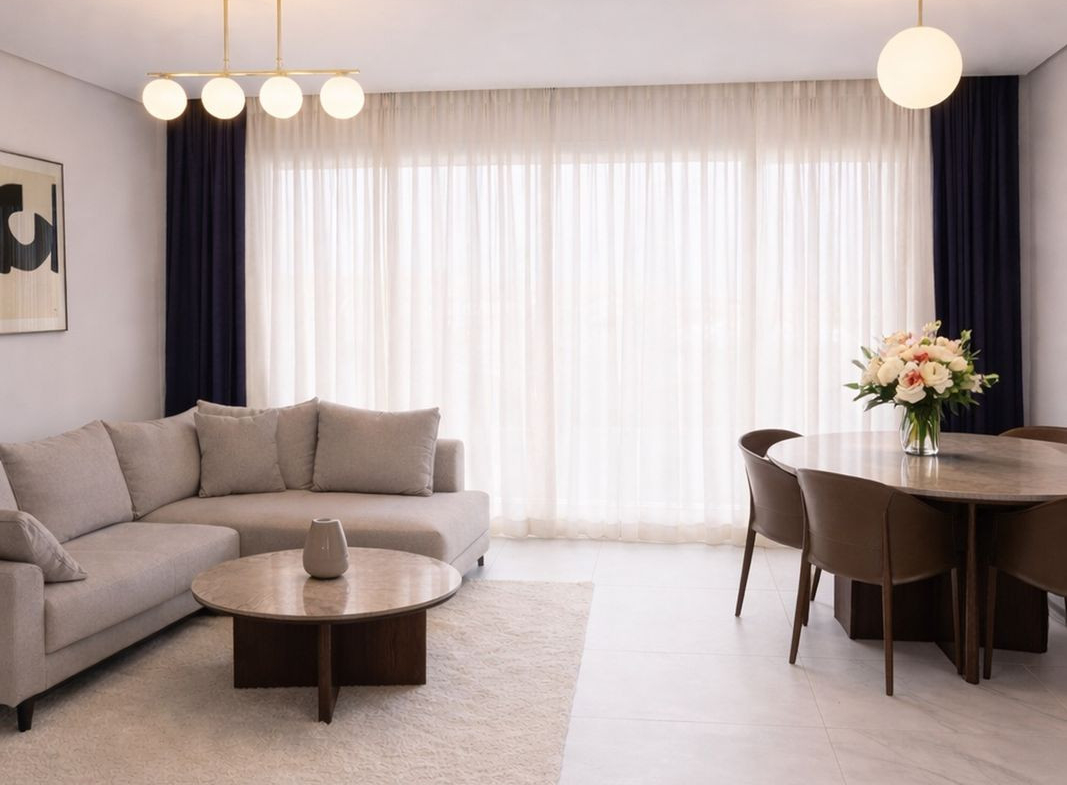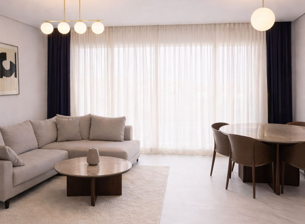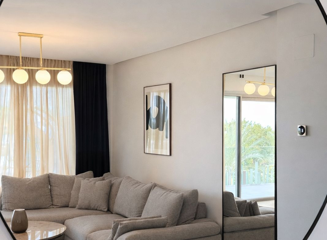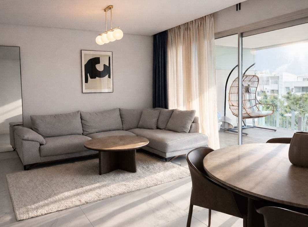 The apartment is offered fully furnished and in brand-new condition. It features a bright open-plan living and dining area, a fully equipped modern kitchen with high-end appliances, and a spacious enclosed terrace, perfect for enjoying the Mediterranean climate year-round.