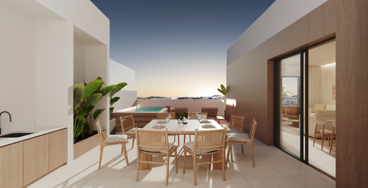 The development in San Pedro de Alcantara is made up of 35 homes with 2 and 3 bedrooms, with duplexes with terraces-solariums. Garages in the basement and commercial premises on the ground floor, in a building with avant-garde architecture, with first-class qualities and an exceptional location in the heart of the Costa del Sol.