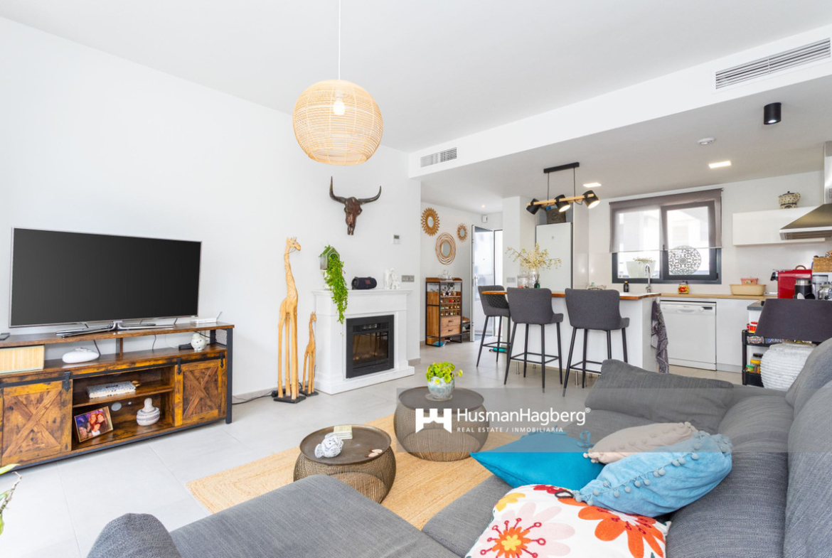 Newly built ground floor apartment with two terraces, garden & pool. Welcome to a home where modern design meets comfortable living – this stylish and fully furnished ground floor apartment, completed in 2023, offers everything you could wish for a life in the sun. Here you live with the feeling of villa living, but with the advantages of a comfortable apartment – and with generous outdoor areas to both east and west for sun from morning to evening.