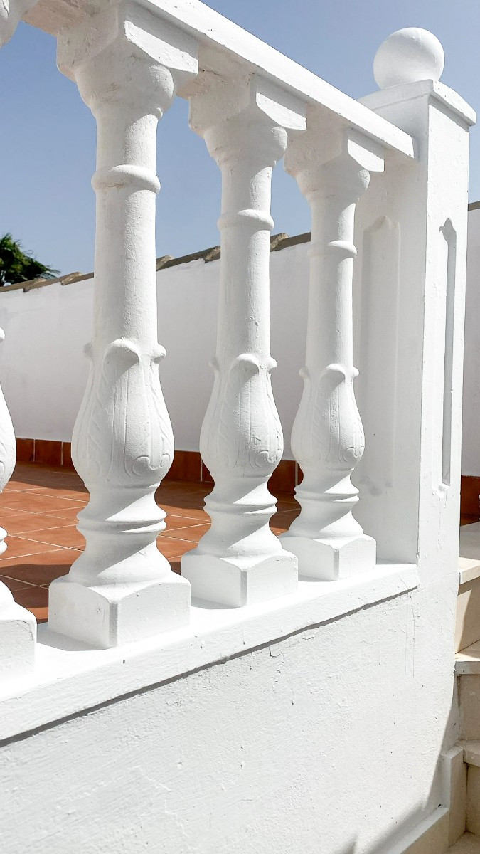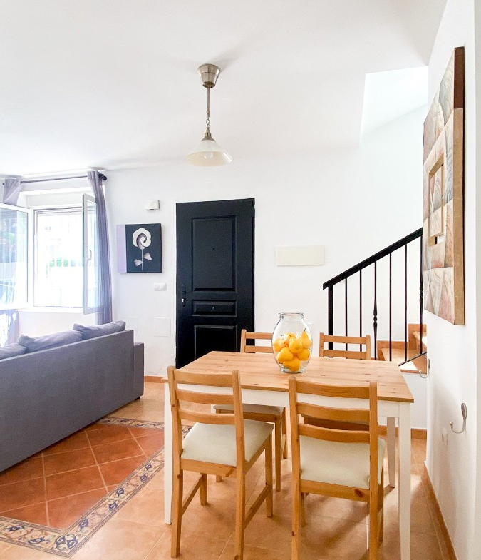 The spacious, open-plan living room connects to a front terrace, ideal for enjoying breakfast in the sun , while a practical utility room is located at the rear. The fully equipped kitchen, only eight years old, is in excellent condition. All rooms feature lined built-in wardrobes , white lacquered doors , and modern terrazzo and ceramic tile flooring.