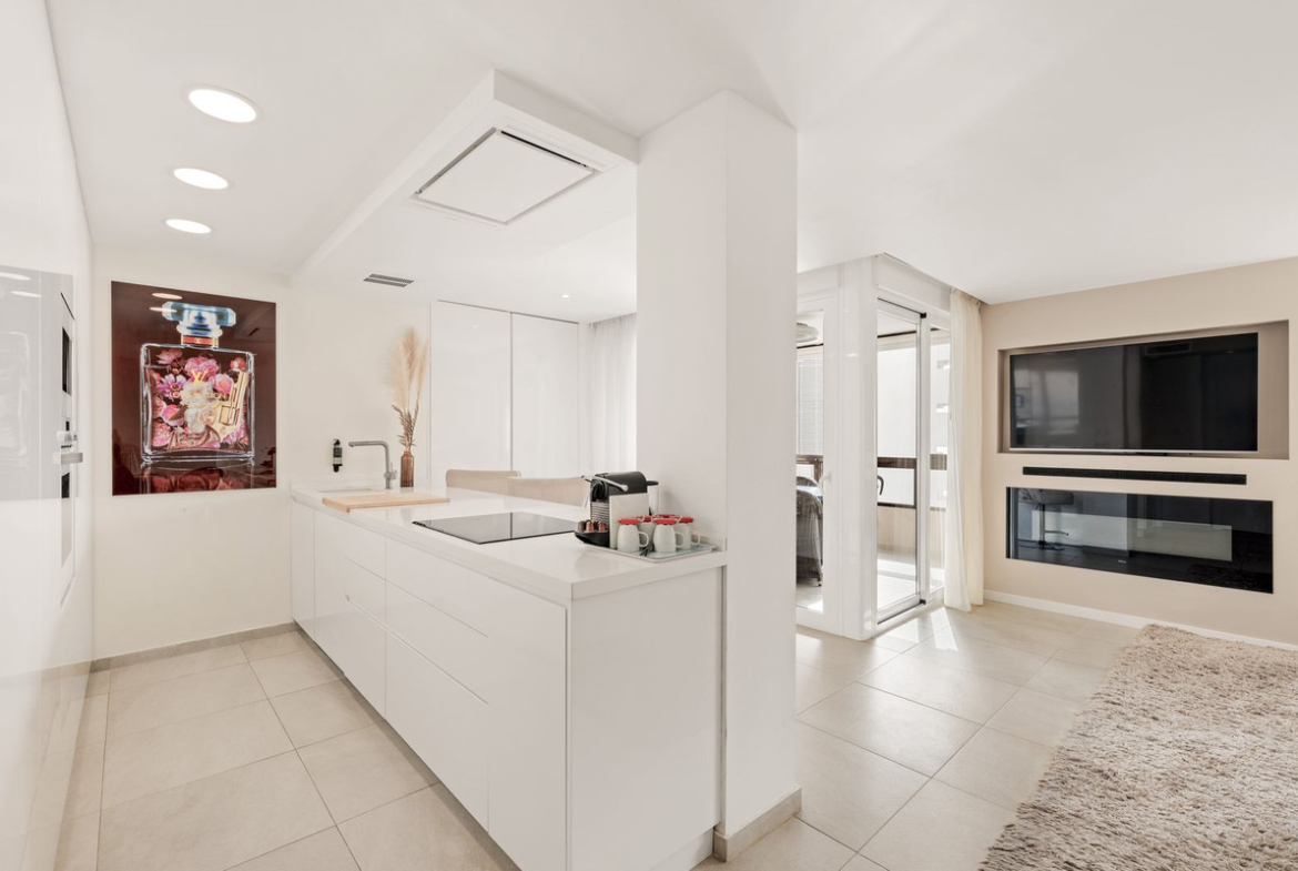 This spacious, tastefully upgraded apartment offers luxury finishes throughout. It features a generous open-plan living area with a modern kitchen that flows seamlessly onto a terrace boasting captivating sea views.